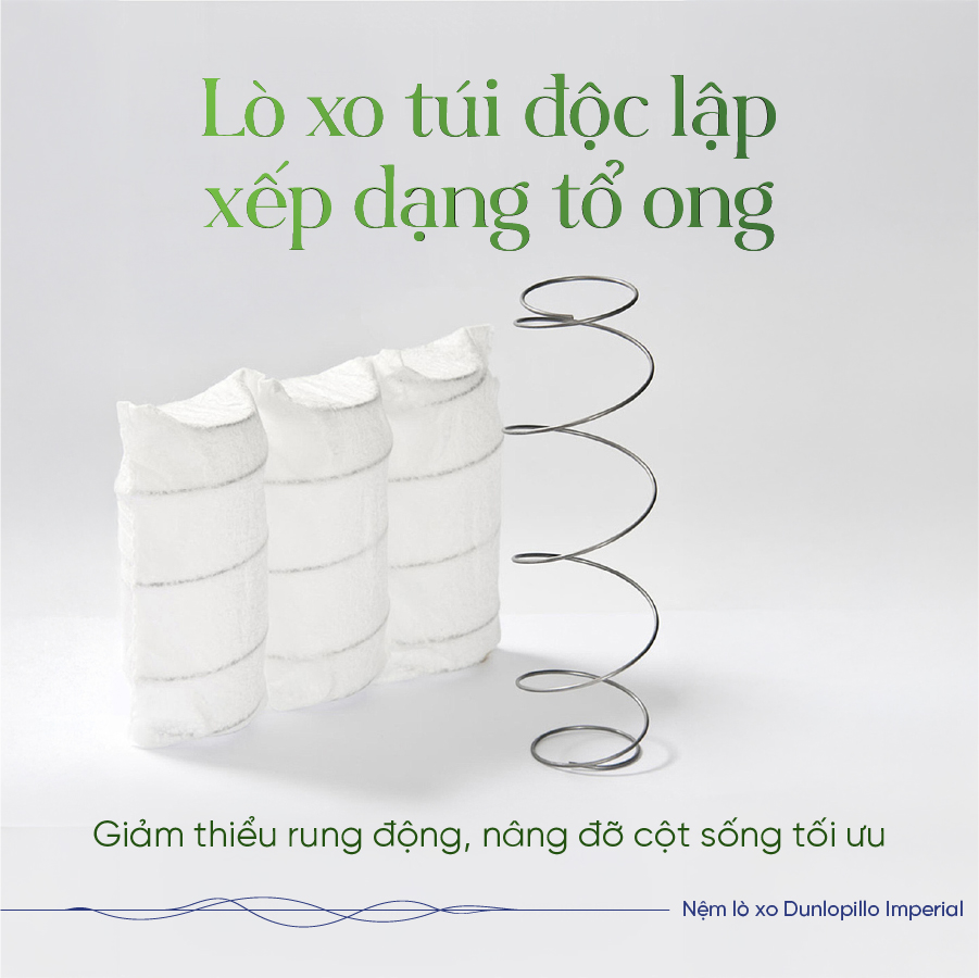 Chúng tôi vận chuyển miễn phí NỘI THÀNH các khu vực: Tp.HCM ( trừ Cần Giờ), Nội thành các quận Tp.Hà Nội. Đồng Nai (Tp. Biên Hòa, Long Thành ), Bình Dương ( Dĩ An, Thuận An, Thủ Dầu Một), Tp. Cần Thơ, An Giang(Tp. Long Xuyên), Vũng Tàu(Tp. Vũng Tàu) và Đắk Lắk (Tp.Buôn Ma Thuột), Bình Phước (Tp Đồng Xoài) Khánh Hòa (Tp. Nha Trang) , Kiên Giang (Tp. Rạch Giá) , Bình Thuận (Tp. Phan Thiết). - Hỗ trợ 50% phí vận chuyển ở các khu vực tỉnh khác. - Anh/Chị vui lòng liên hệ shop để được hỗ trợ chi tiết. Sản phẩm có độ cao 29cm - sản phẩm độc quyền tại Thế Giới Nệm. Nệm lò xo cao cấp được sản xuất theo tiêu chuẩn Châu Âu. Mang lại cho bạn giấc ngủ ngon và tận hưởng cuộc sống theo cách của riêng mình. Nệm lò xo túi độc lập Dunlopillo Imperial cao 29cm Nệm lò xo Imperial có thiết kế , sắp xếp dưới dạng so le/tổ ong. Nệm cung cấp sự hỗ trợ vượt trội, độ bền cao, giảm thiểu tối đa chuyển động cơ thể, tránh ảnh hưởng đến người nằm cạnh. Đồng thời nệm còn mang đến sự hỗ trợ vượt bậc cho cột sống. Đặc biệt, mặt nệm có bổ sung lớp cao su thiên nhiên giúp gia tăng sự đàn hồi và hỗ trợ nâng đỡ cơ thể. Cấu trúc hàng ngàn lỗ nhỏ của lớp cao su cho phép nhiệt trong nệm được thoát ra ngoài, tránh hầm bí / nóng lưng, mang đến cảm giác thoáng mát hơn cho người nằm. Bề mặt nệm sử dụng vải Cool Breeze. Với thiết kế độc đáo tạo cảm giác mềm mại và mát mẻ từ cấu trúc sợi đặc biệt, thúc đẩy quá trình làm mát. Đảm bảo cho nệm luôn tươi mới, thoáng mát và an toàn hơn khi sử dụng. Nệm Imperial cũng áp dụng công nghệ Nano - Dunlopillo TalasilverTM. Công nghệ này có khả năng kháng khuẩn, không gây dị ứng, không cho phép vi khuẩn gia tăng trên bề mặt nệm. Giúp bảo vệ sự thoải mái tối ưu, mang đến cho bạn và gia đình một giấc ngủ khỏe mạnh. BẢO HÀNH : 10 NĂM