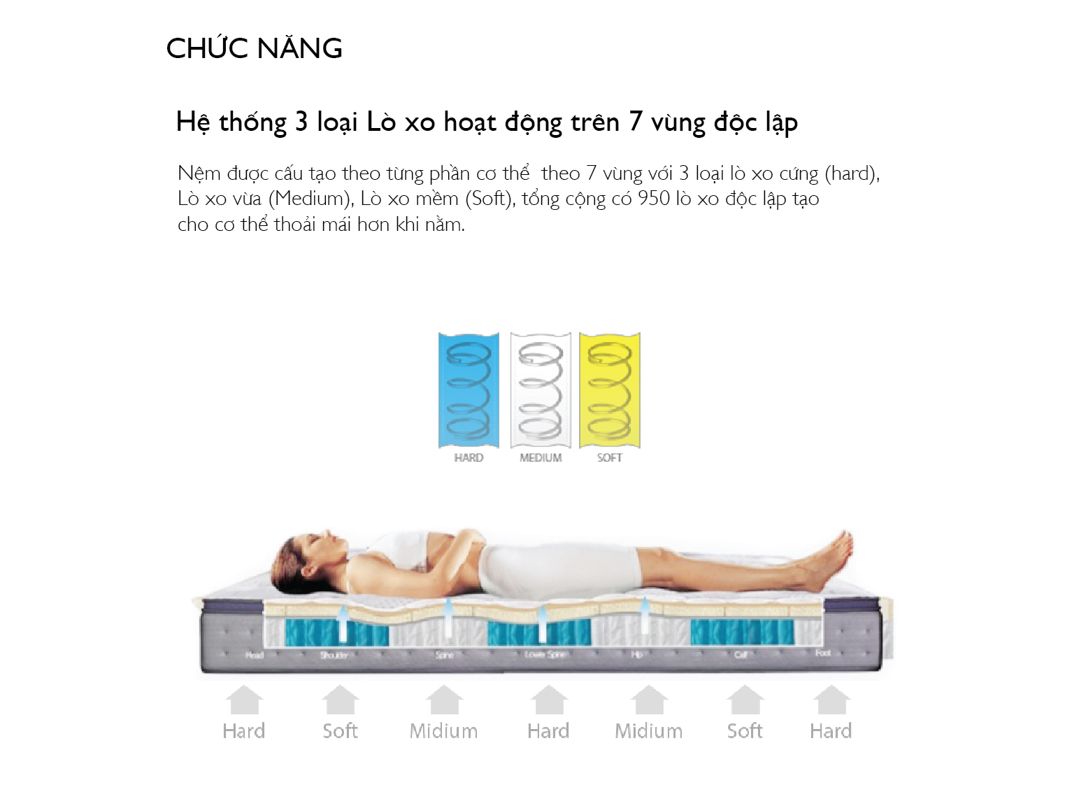- Lò xo độc lập 7 vùng Multiflex