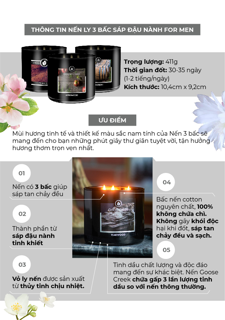 ✨Nến ly 3 bấc sáp đậu nành For Men Goose Creek (411g) - Applewood