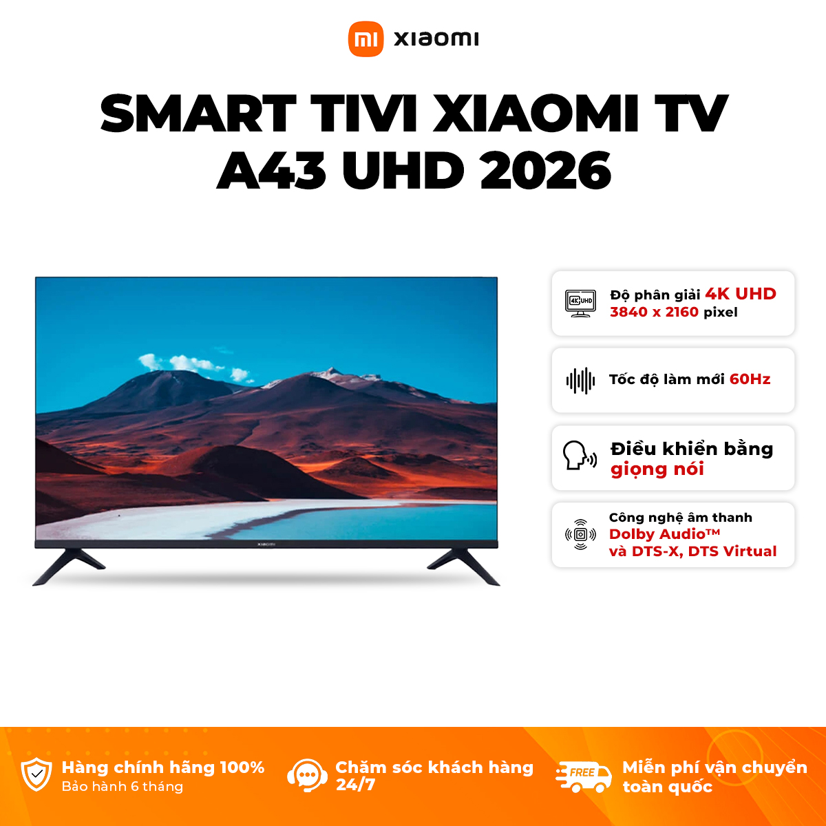 Tivi Xiaomi 43 inch A Google TV 2026 – chiếc TV mang đến trải nghiệm hình ảnh sắc nét 4K kết hợp công nghệ HDR tối ưu độ tương phản và màu sắc. Với công nghệ MEMC, mọi chuyển động trở nên mượt mà, sống động như thật. Âm thanh đa chiều được nâng tầm với Dolby Audio, DTS:X và DTS Virtual:X, giúp bạn đắm chìm trong không gian giải trí chân thực. Thiết kế viền mỏng tinh tế, lớp kim loại sang trọng góp phần làm nổi bật không gian sống hiện đại của bạn. Tất cả nội dung yêu thích – từ phim ảnh, chương trình đến ứng dụng – đều hội tụ trên một giao diện Google TV thân thiện và thông minh.