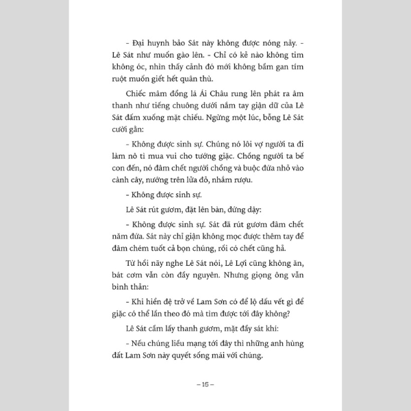 – Lê Lợi này không phải là kẻ bán nước, vì miếng cơm thừa canh cặn của giặc mà quên mất nỗi thống khổ của đồng bào.”