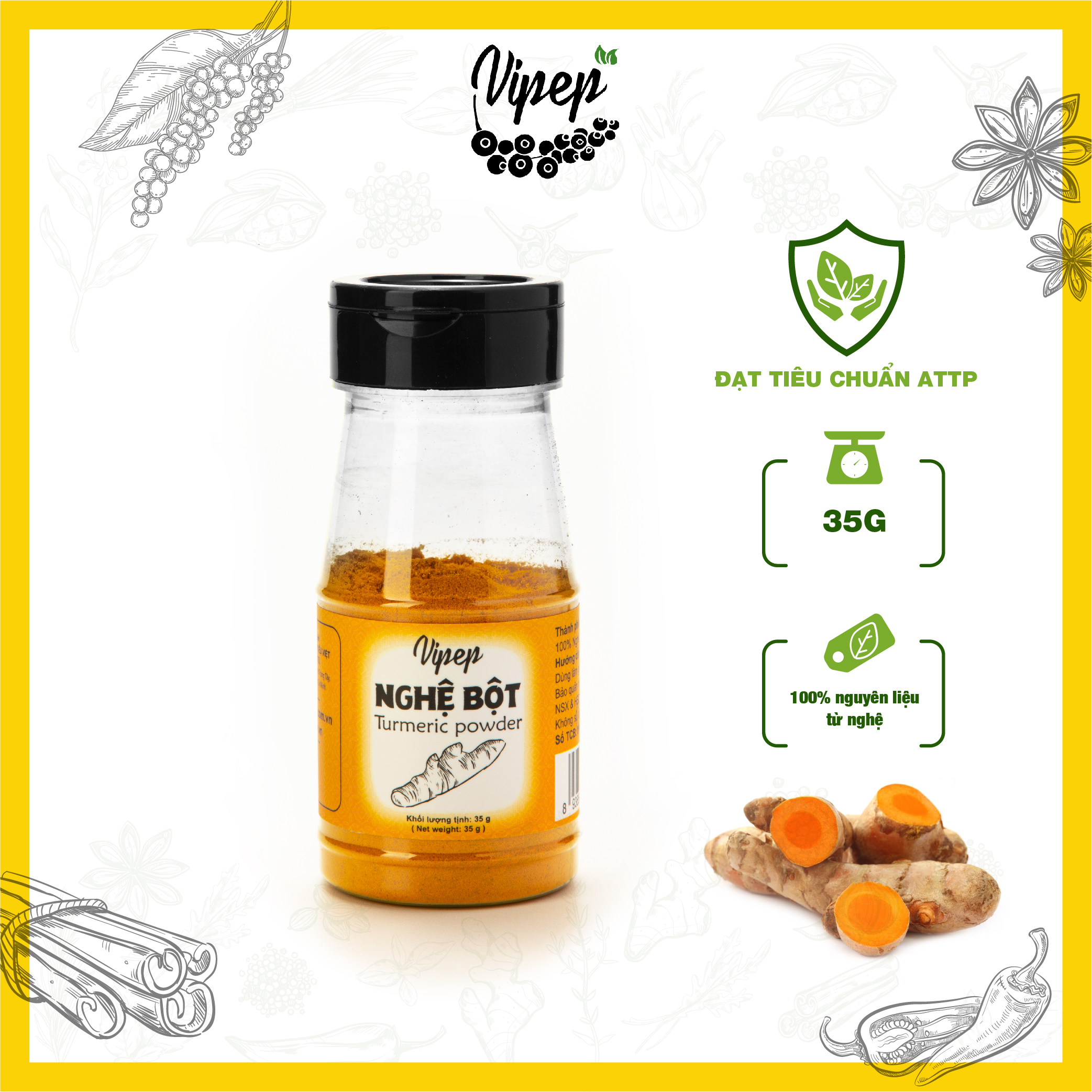 ✨Nghệ Bột Tự Nhiên Vipep Hũ Nhựa 35g - Gia vị Vipep