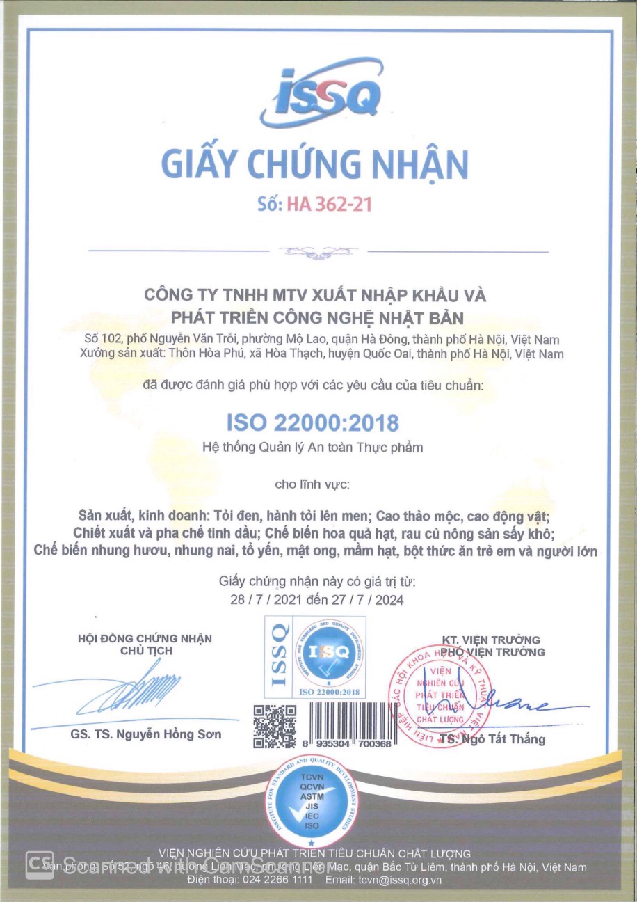 - Hạn sử dụng: 24 tháng kể từ ngày sản xuất. Sản xuất và chịu trách nhiệm về sản phẩm: CÔNG TY TNHH MTV XUẤT NHẬP KHẨU VÀ PHÁT TRIỂN CÔNG NGHỆ NHẬT BẢN