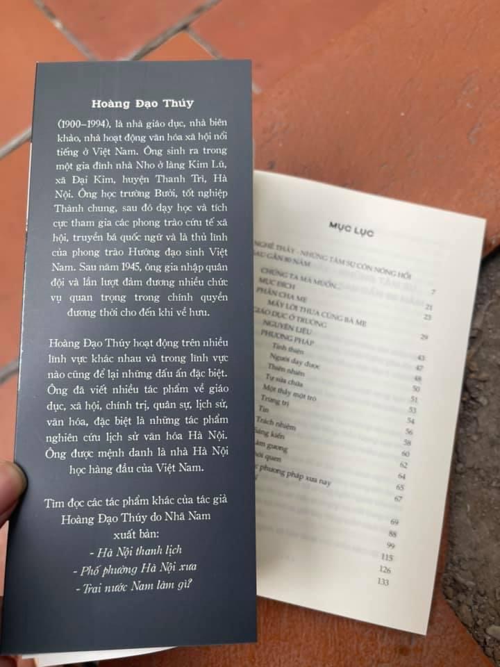 Sách đã phát hành. Mình kịp gửi các bạn dịp khai giảng 5.9 và 20.11 Tôi trích lục bài giới thiệu của anh Nguyễn Quốc Vương - người viết lời giới thiệu sách. “Đối với những người biết về Hướng đạo sinh hay lịch sử Việt Nam trước 1945 hẳn nhiên đều biết cụ Hoàng Đạo Thúy. Đối với tôi, cụ là một người rất đặc biệt ở nhiều phương diện. Mẫu hình cụ trước 1945 chắc hẳn rất nhiều người thần tượng và yêu mến. Không chỉ phụ nữ mà cả đàn ông cũng thần tượng. Nhân dịp 20. 11 năm nay, Nhã Nam tái bản một cuốn sách mỏng của cụ-"Nghề thầy". Tôi được vinh dự viết lời giới thiệu cho lần tái bản này. Một cuốn sách rất mỏng nhưng đầy sức nặng. Những ai quan tâm tới giáo dục, những ai đang làm thầy và suy nghĩ về nghề của mình khi đọc cuốn sách này xong hẳn sẽ có nhiều day dứt khôn nguôi. Sách sẽ phát hành dịp 20. 11 này. Xin giới thiệu với các bạn bìa sách và bài giới thiệu của tôi. NGHỀ THẦY-NHỮNG TÂM SỰ CÒN NÓNG HỔI SAU GẦN 80 NĂM Tôi nhận được lời mời viết lời giới thiệu cho cuốn “Nghề thầy” của cụ Hoàng Đạo Thúy (1900-1994) giữa lúc làn sóng phê bình sách giáo khoa tiếng Việt lớp 1 vừa lắng xuống. Bởi thế, tôi đã đọc bản thảo cuốn sách trong một tâm trạng rất đặc biệt với không biết bao nhiêu mối liên tưởng dọc ngang giống như từng đợt sóng. Hiện thực ngổn ngang của giáo dục hiện tại và những lời gan ruột của một người thầy nổi tiếng, thần tượng của nhiều thế hệ thanh niên, đã làm tôi chìm đắm trong nhiều suy ngẫm và liên tưởng. Đã gần 80 năm trôi qua kể từ khi cuốn sách “Nghề thầy” được xuất bản lần đầu tiên (1944). Tuy nhiên, chong đèn lên và đọc nó trong tâm thế không rời bỏ những ngổn ngang của hiện thực và kìm nén suy tư, ta sẽ thấy những gì cụ viết trong cuốn sách, những lời tâm sự mà cụ giãi bày trong cuốn sách mỏng này vẫn còn nóng hổi. … Những việc trên nhỏ đấy mà lớn đấy! Dễ đấy mà khó đấy! Chúng ta hãy thử học theo cụ vận động người Việt chúng ta mà trước hết là chính gia đình mình không dùng chung nước chấm, không uống chung cốc chén trong gia đình, công sở, quán ăn mà xem! Những chỉ dẫn cụ thể về phương pháp rèn luyện cho trẻ có thói quen tốt, biết vệ sinh thân thể, lễ phép với thầy cô, cách chữa bệnh “đùn” (ỷ lại) ở trẻ cũng rất hữu ích, có thể bây giờ vẫn còn đắc dụng. Cuối cùng, tác giả đã phân tích rất hay về sứ mệnh của người thầy và đưa ra những chỉ dẫn cụ thể cho người thầy những việc cần làm để hoàn thành sứ mệnh ấy. Trích dẫn dưới đây có thể hơi dài nhưng tôi muốn trích nguyên một đoạn cụ viết ngay đầu sách: “Chúng ta mà muốn, thì chúng ta có thể đổi hẳng tương lai nòi giống. Chỉ mười năm, phải, mỗi người chỉ tận tụy mười năm, là một thế hệ thanh niên sẽ đổi khác. Huống hồ đời giáo dục của chúng ta ba mươi năm, hay hơn nữa. Đó không phải là mơ mộng. Sự thực ai cũng làm được, mà ai cũng phải làm mới được. Chúng ta đã không quản gì đồng lương, không nhìn đến chỗ ngồi. Trong trường tiến thủ đã chỉ tranh lấy một địa vị lạnh nhạt nhất, nhưng có ích nhất. Bước vào giáo giới là chúng ta đã có mục đích: không phải đi làm để kiếm ăn thôi, không phải chỉ đi làm công. Chúng ta “làm thầy”. Cái huy hiệu bao nhiêu vinh hạnh thanh cao. Nhưng nó chỉ có được, khi chúng ta biết cả cái trách nhiệm nặng nề cho mình quan hệ cho tổ quốc. Chúng ta không phàn nàn vì người ta bạc đãi, hãy xét mình đã: Mình đã nhìn rõ công việc mình và để cả tâm chí, thân thế vào đó chưa? MÌnh đã biết nghề thầy và cố gắng cho xứng với nghề ấy chưa?” Những thây đã tận tụy, trong lâu năm, học trò đã khá giả, làng đã sạch sẽ, thịnh vượng, nước đã thảnh thơi, lúc trẻ nhỏ vào học, mặt sáng sủa tỉnh táo; thế thì thầy cũng có thể vui lòng mà bảo rằng: “tiến vi quan, đạt vi sư” người xưa nói vậy.