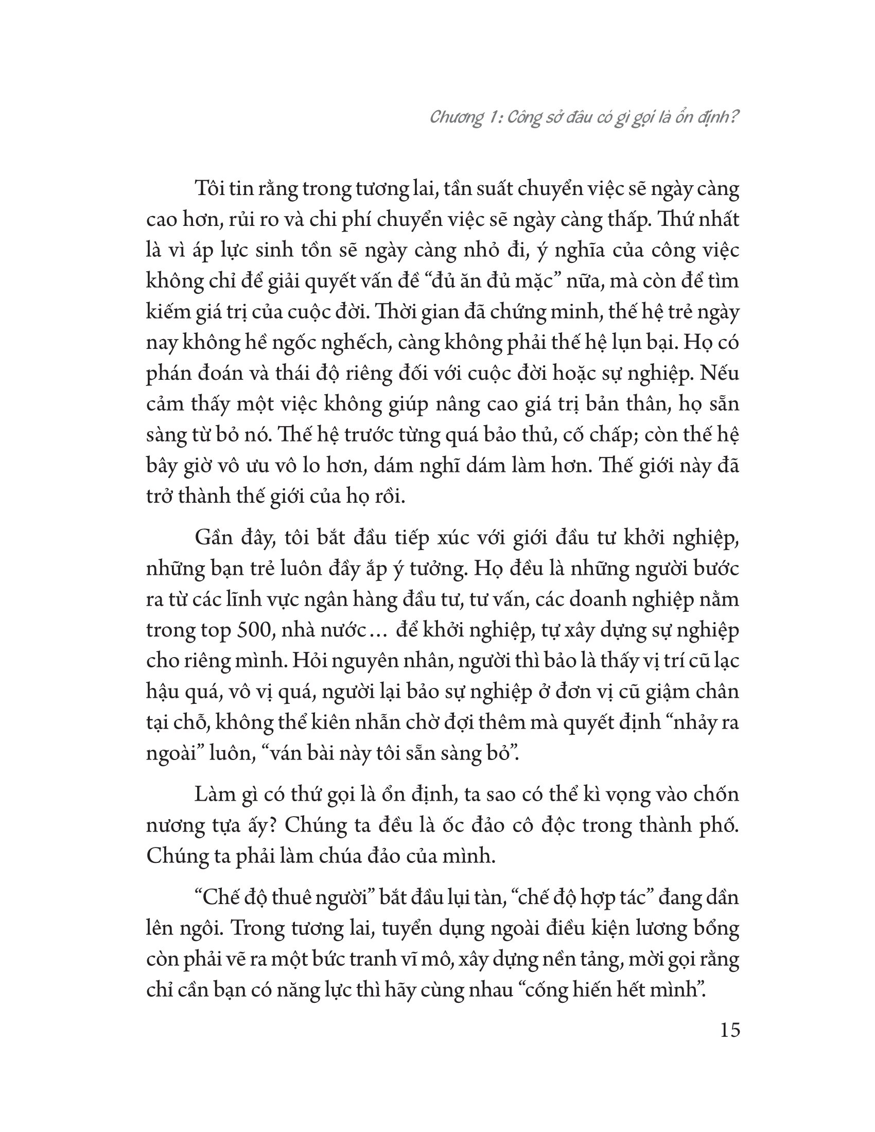 Hành trình của tác giả Trần Lập Phi là hành trình "chuyển đổi đường đua của cuộc đời". Khi đọc cuốn sách này, bạn sẽ phải tự đặt ra câu hỏi rằng liệu tương lai "ổn định", êm ả không chút bất ngờ có phải tương mà bản thân mong muốn hay không. Bạn sẽ phải làm việc với bản thân, giữa một bên truyền thống là theo đuổi sự yên ổn, thế giới ngoài kia hiểm ác và đầy những điều bất trắc; còn nửa còn lại thì thúc giục bạn trải nghiệm và khám phá nhiều hơn, đừng quá "ổn định" mà kìm hãm chính bản thân mình.