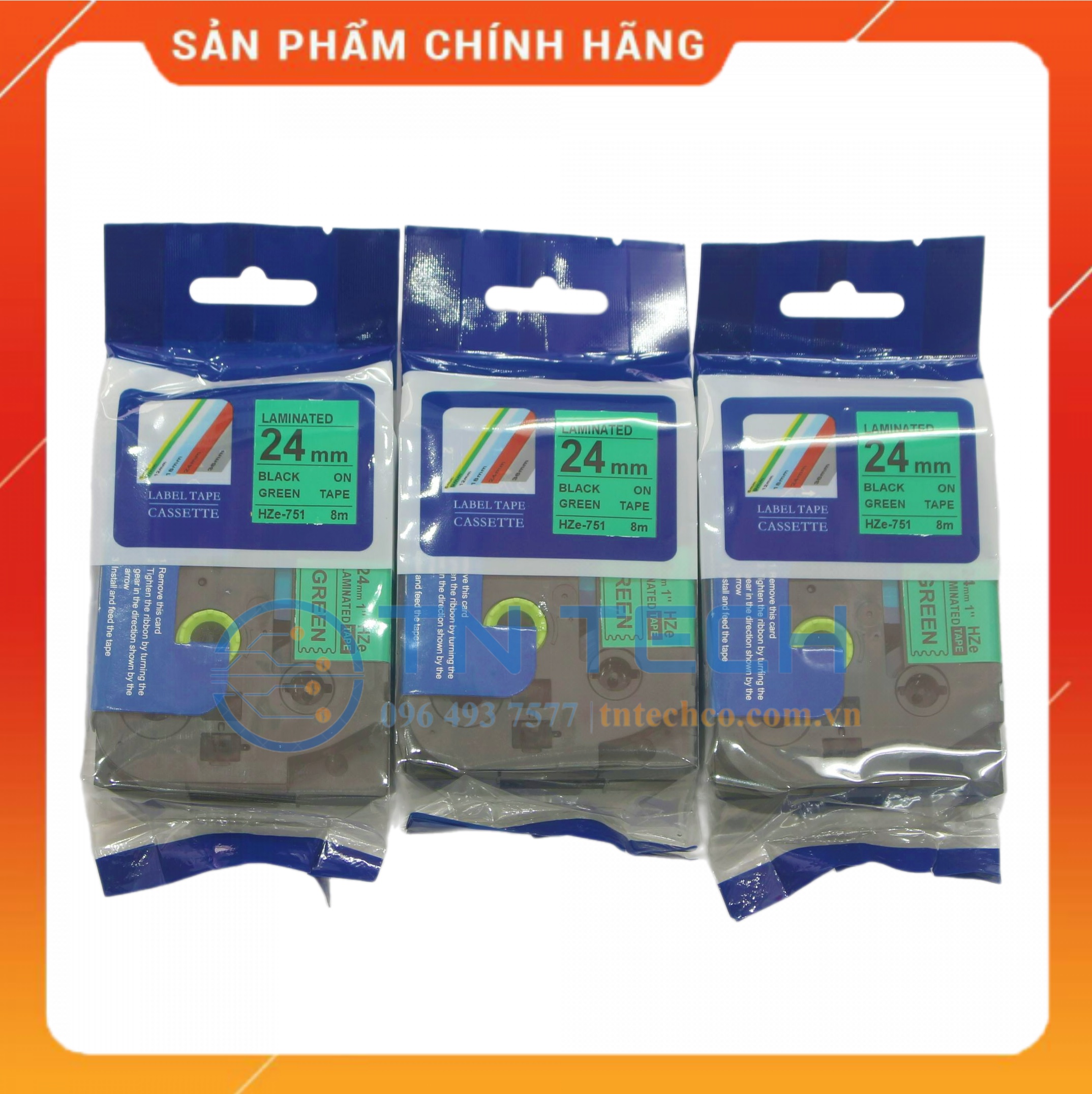 ✨Nhãn In HZE-751 - Đen nền xanh lá 24mm x 8m - Dùng cho máy in BROTHER - AIMO - PUTY [Hàng nhập khẩu]