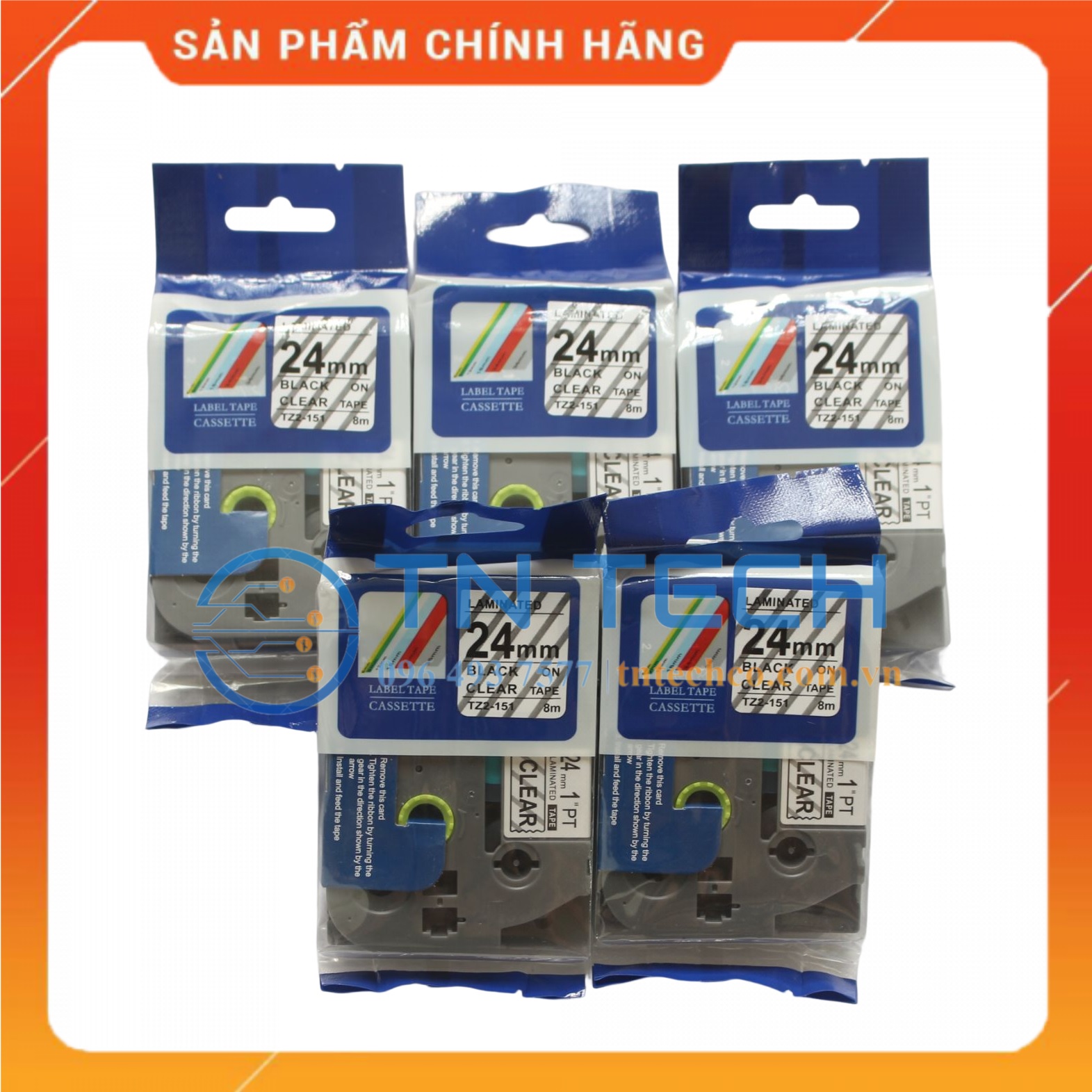 Nhãn in TZ2-151 Brother Nhãn in đa lớp sử dụng cho máy in nhãn Brother, tất cả trong 1, mực nằm bên trong, chống chịu dung môi, hóa chất, nước, dầu mỡ, nhiệt độ Mã