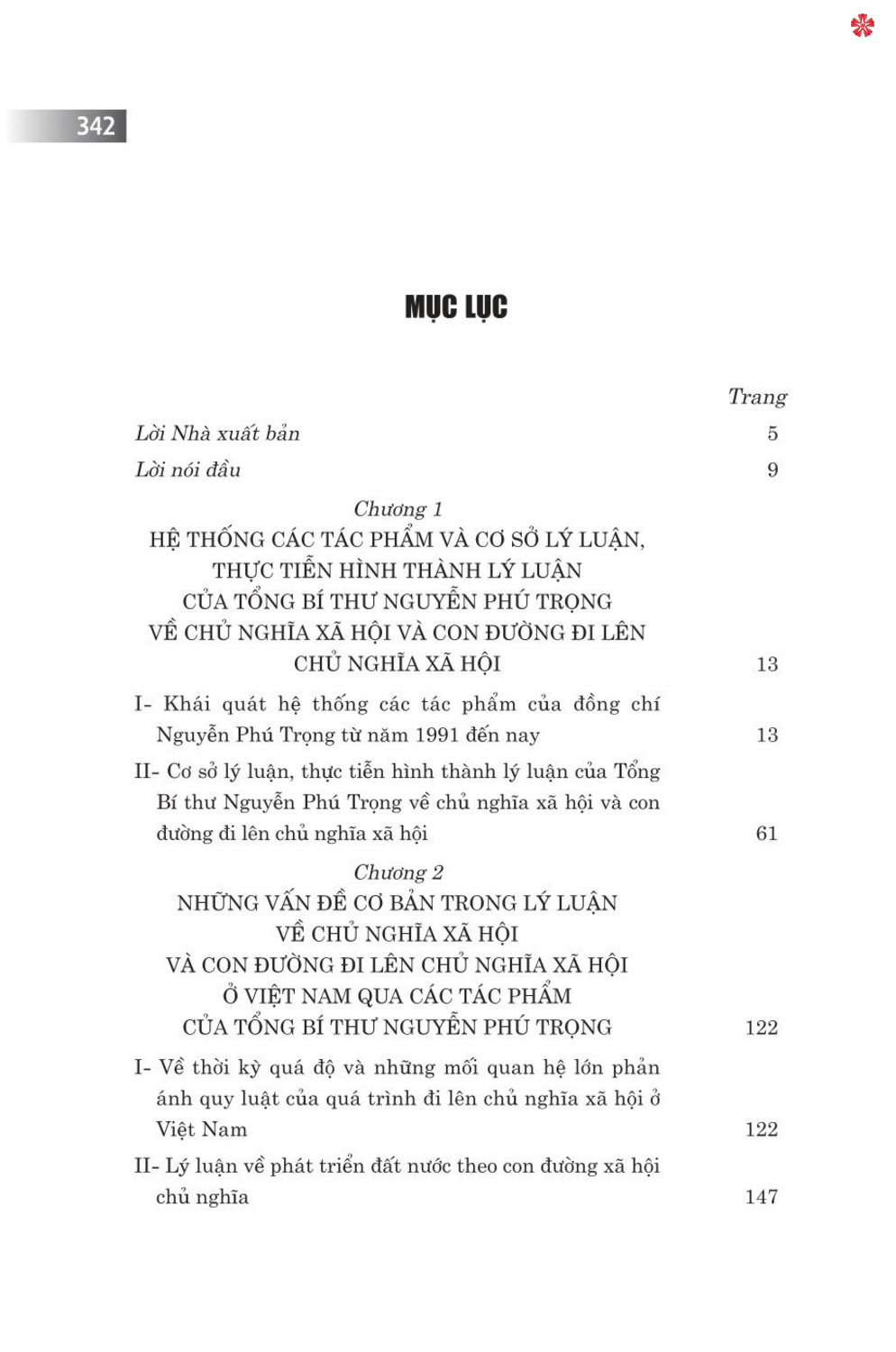 Nội dung cuốn sách gồm 3 chương, tập trung làm rõ nhận thức lý luận về chủ nghĩa xã hội và con đường đi lên chủ nghĩa xã hội qua các tác phẩm của Tổng Bí thư Nguyễn Phú Trọng về các phương diện như: Đ...
