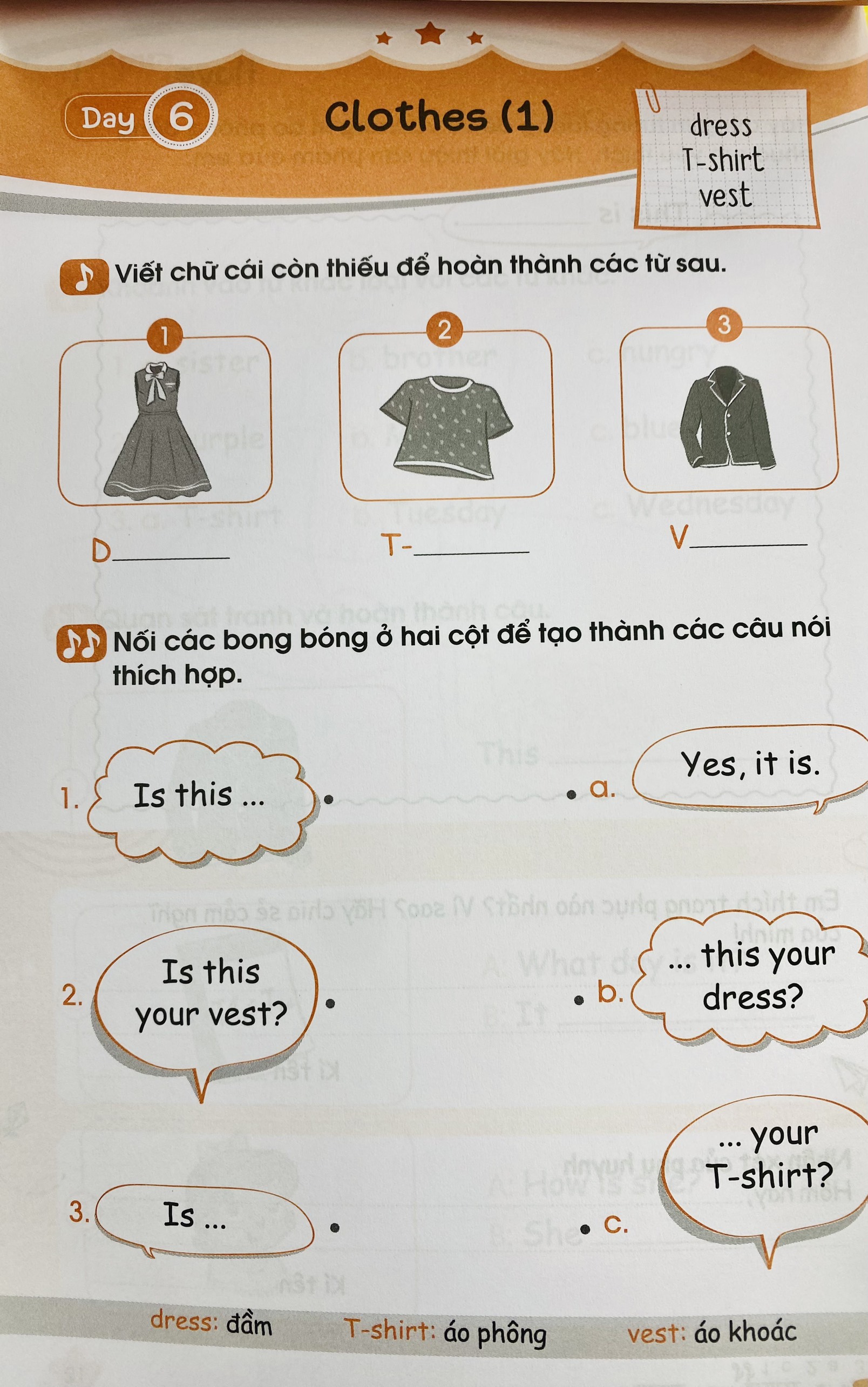 Mỗi ngày hè được thiết kế dựa trên chủ điểm, từ vựng và cấu trúc quen thuộc mà các em đã được học.