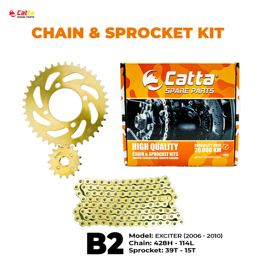 Nhông sên dĩa Exciter (bộ nhông xích Exciter) thương hiệu CATTA Spare Parts được sản xuất từ thép carbon S45C chuyên dụng trong ngành công nghiệp nhông sên dĩa. Do đó, sản phẩm đạt chất lượng cao về độ cứng, độ bền, khả năng chịu tải trọng lớn, đạt tiêu chuẩn quốc tế dành cho các sản phẩm truyền động.