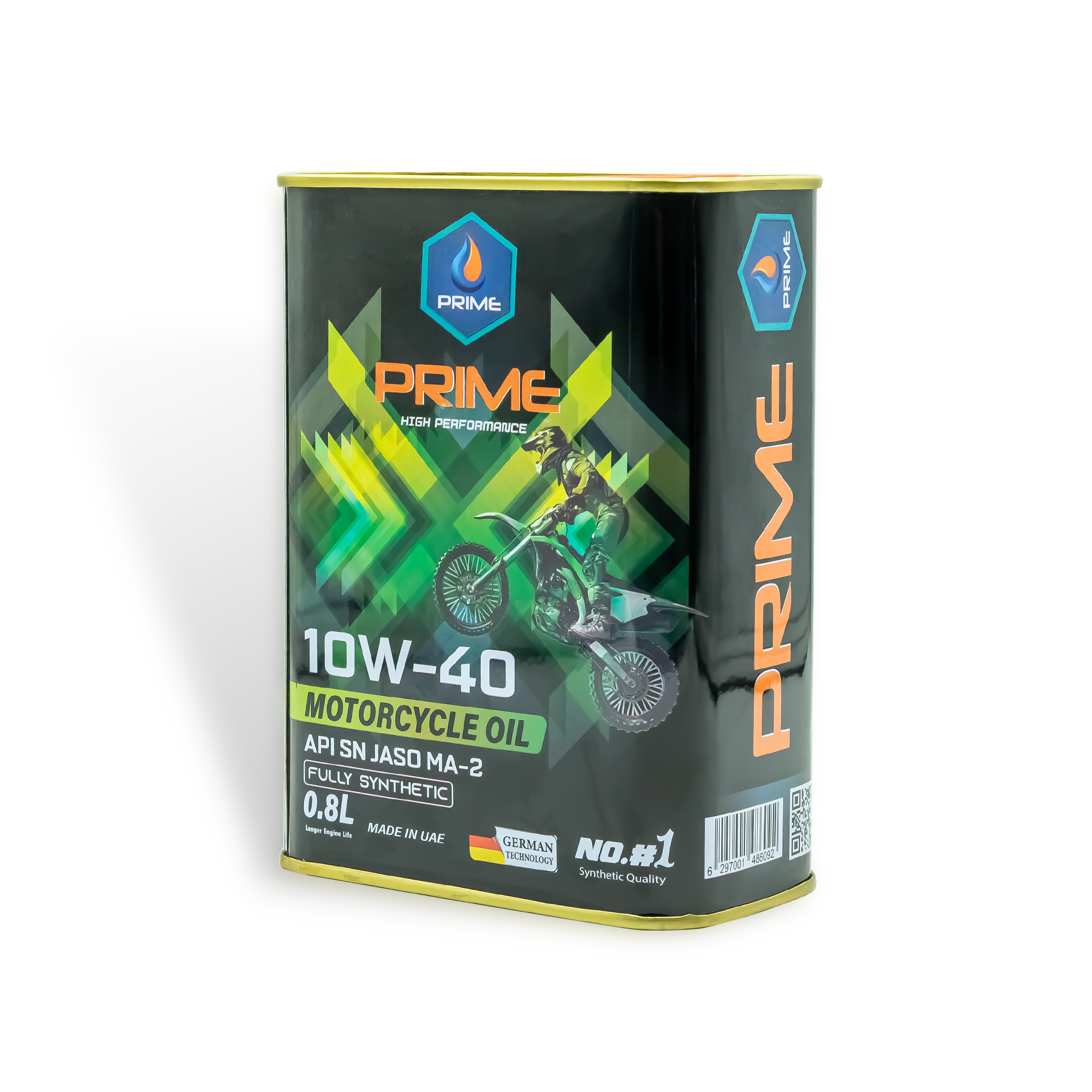 Nhớt Prime tổng hợp toàn phần có đa dạng dung tích 800ml, 1 lít, 1.1 lít, 1.3 lít được sản xuất từ dầu gốc nhóm IV (nhóm cao nhất) và các phụ gia cao cấp; có cấp độ nhớt SAE 10W40 và đạt cấp chất lượng API SN của Viện Dầu Mỏ Hoa Kỳ, đạt JASO MA2 dành cho xe phân khối lớn của Hiệp Hội Kỹ Sư Tự Động Hóa Nhật Bản; đáp ứng hoàn hảo các tiêu chuẩn chất lượng quốc tế dành cho dầu nhờn động cơ xe máy, motor PKL.