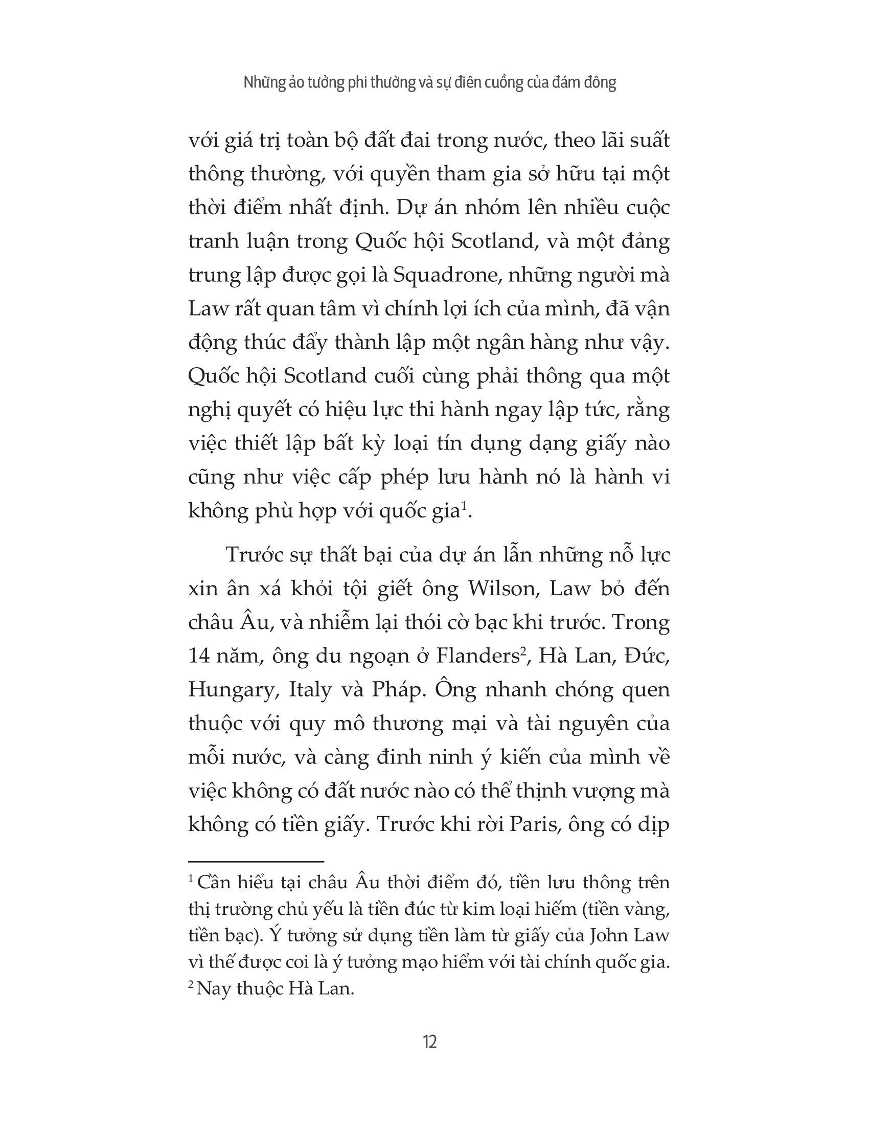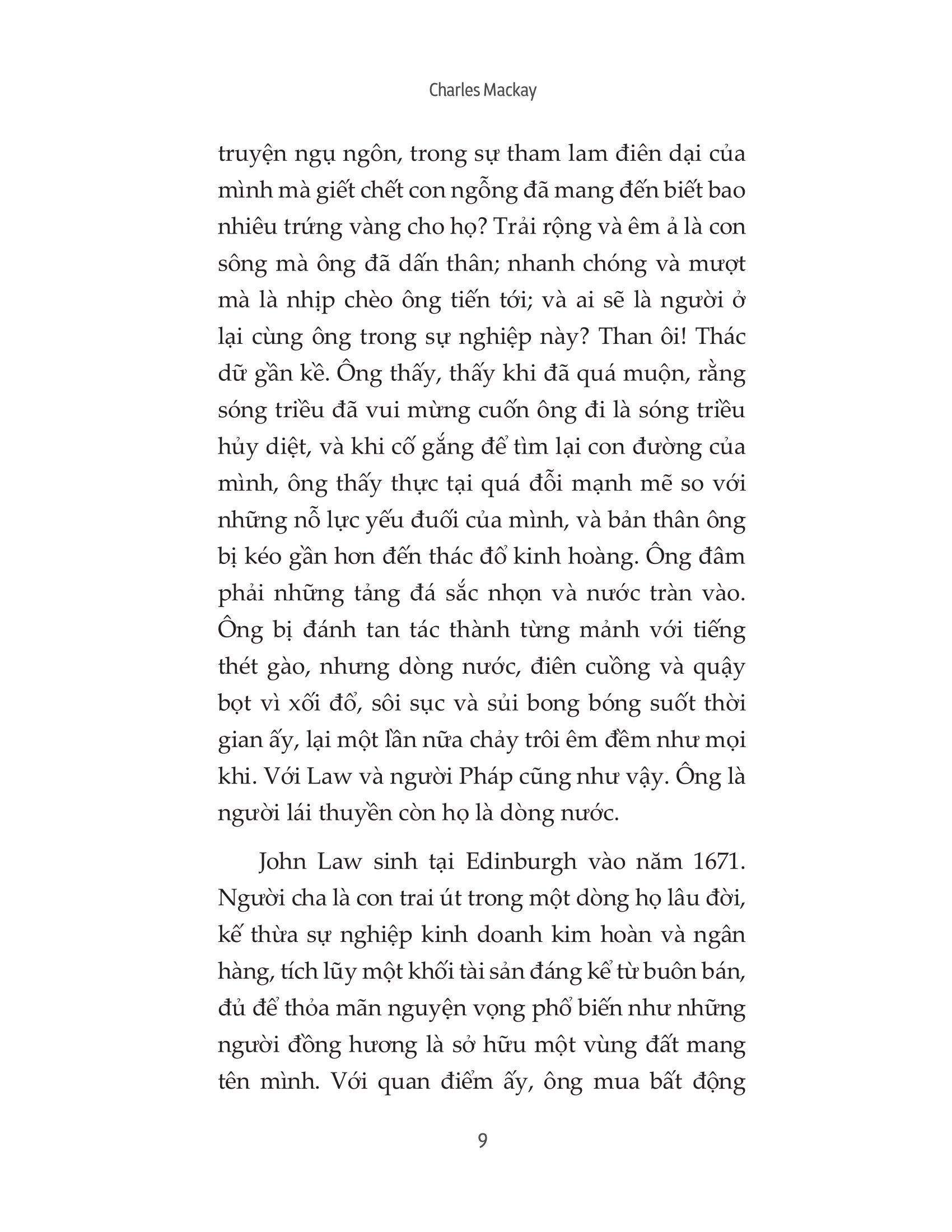 Charles Mackay đã giải mã những giai đoạn lịch sử “mất trí” vì lòng tham và nỗi sợ hãi của nhân loại, cách những kẻ thao túng thị trường tài chính lợi dụng sự cả tin và tham lam của “con mồi” trước sự hấp dẫn mê hoặc của “cơn sốt loạn trí” đang tràn lan phổ biến.