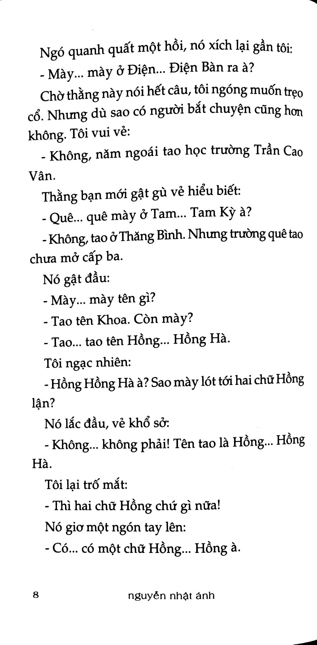 Tác giả: Nguyễn Nhật Ánh Khổ sách: 12x20cm Số trang: 280 Giá bán: 80,000 VNĐ ISBN: 978-604-1-5777-4 In lần thứ 40 năm 2020 NXB: NXB Trẻ NPH: NXB Trẻ Giới thiệu tác phẩm: Trong truyện,