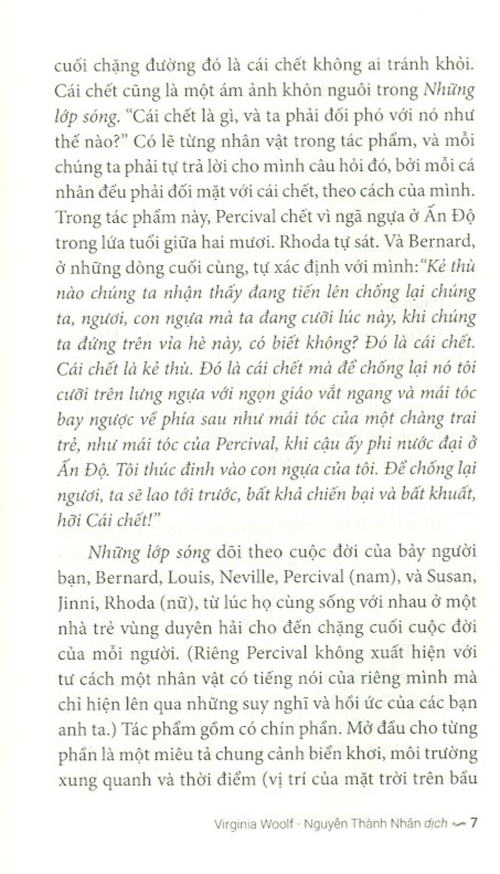 "Những lớp sóng" của Virginia Woolf là triều dâng của đời sống, triều dâng của một thứ ngôn từ nghệ thuật ngoại hạng mà dường như chỉ có một thiên tài như nàng, người tạo ra những bước sóng lạ thường ...