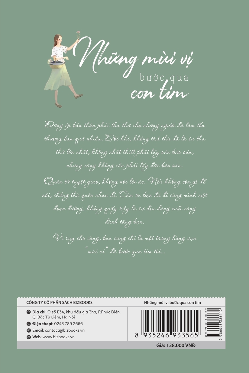 “Khuôn mặt nữ nhân không nên nhìn gần, gần quá tất không còn đẹp nữa. Tâm tư nam nhân không cần nhìn kỹ, kỹ quá tất đau lòng mình.” Những Mùi Vị Bước Qua Con Tim là cuốn sách Best Seller của tác giả Mộ Dung Y Tố bàn về những cung bậc cảm xúc của con tim nữ nhân trong tình yêu, công việc, gia đình, đời thường. Giữa bộn bề cuộc sống lên bổng xuống trầm của nhân gian đâu là chân dung người con gái sẽ nắm trọn trong tay hạnh phúc. Bước ra đời bạn không có nghĩa vụ phải làm cho cả thế giới thích bạn, đó là một điều viễn tưởng. Hãy chuẩn bị cho mình một tâm hồn thật mạnh mẽ, khí chất ngời ngời, kiến thức uyên bác để trở thành phiên bản tốt nhất của chính mình. Luôn luôn phải nhớ rằng bạn sống lương thiện, cũng cần sắc sảo, càng hiểu cho người khác càng không ai quan tâm đến ấm ức của bạn. Học cách từ chối những việc khiến bạn khó chịu, không chỉ sống đẹp mà còn phải xử đẹp nữa. Hơn 300 trang của cuốn sách là những câu chuyện khiến bạn thấy mình ở trong đó, giận thay hay thương thay cho cô gái giống mình biết bao. Có người dùng nửa chén trà, nhìn thế sự chìm nổi. Có người dùng trái tim phiền muộn, nhìn cuộc đời ồn ào náo nhiệt. Dùng tâm hồn não nề nhìn thế giới, bạn sẽ không có đường trốn. Dùng ánh mắt nhẹ nhõm nhìn thế giới, khắp nơi đều là cảnh đẹp! Trích dẫn: