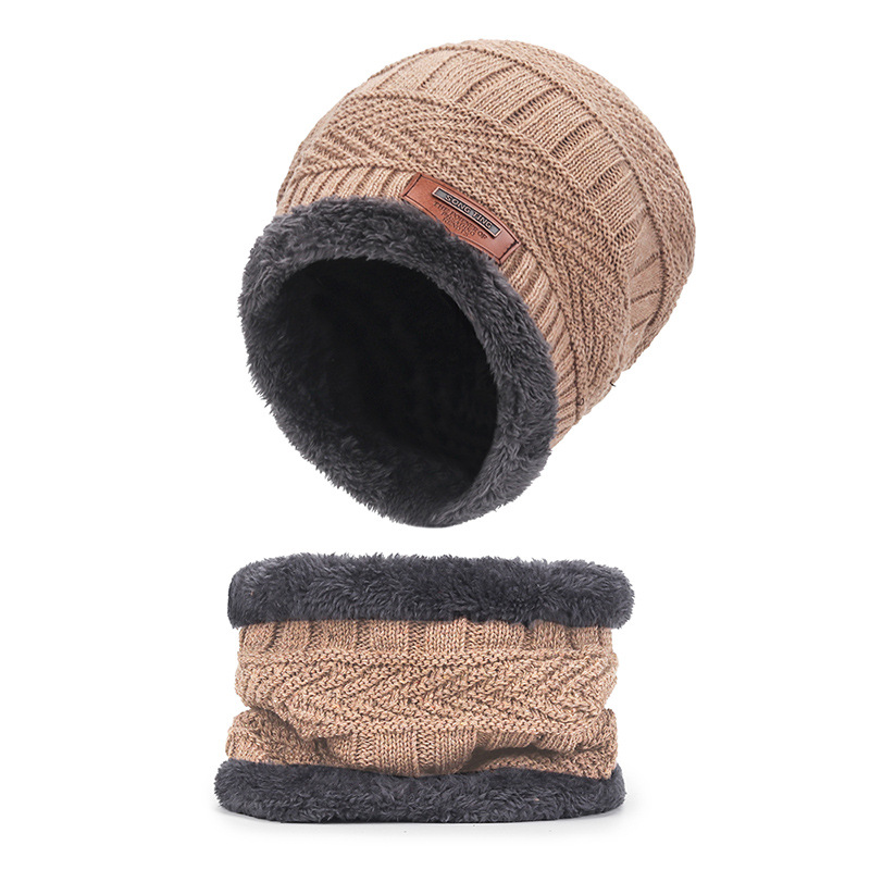 Mũ len kèm khăn ống quàng cổ lót lông dày dặn giữ ấm cho mùa đông