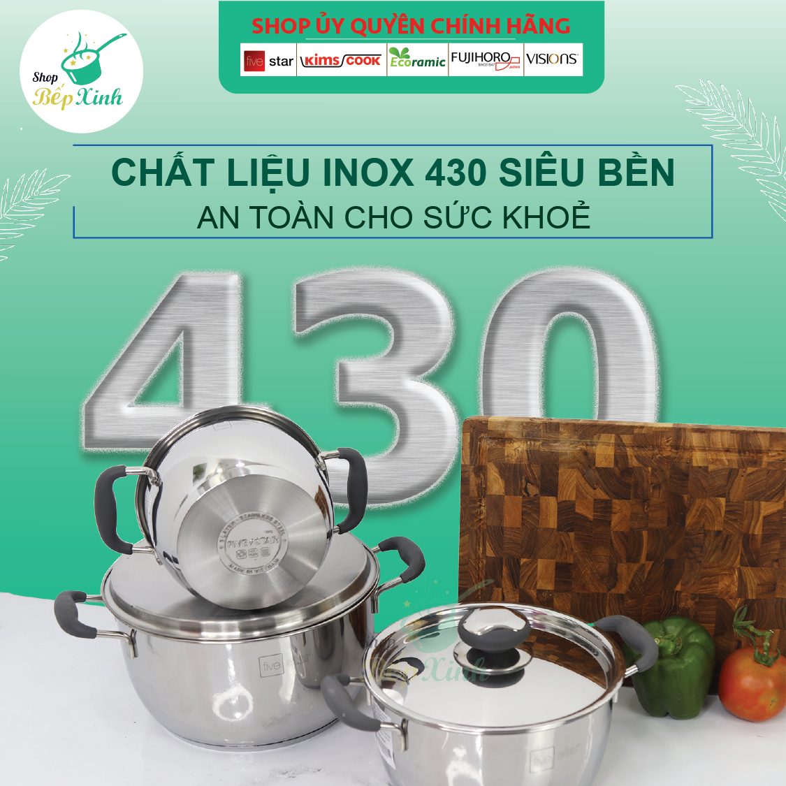 ✨Nồi 3 đáy inox 430 Fivestar Standard quai silicon chống nóng nắp inox-sử dụng bếp từ-tặng 2 vá canh 24cm