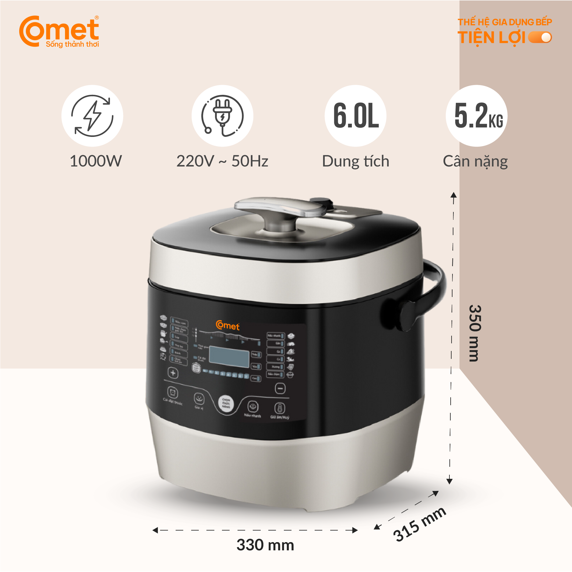 - Comet CM6168 là lựa chọn thông minh cho những ai tìm kiếm một chiếc nồi áp suất điện tử tiện lợi, an toàn và bền bỉ cho gian bếp gia đình. CHẾ ĐỘ BẢO HÀNH