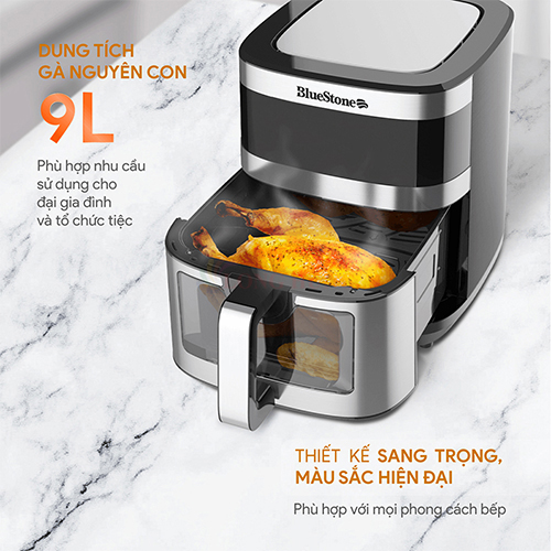 Nồi chiên không dầu Bluestone 9 lít AFB-5886Công suất : 1800WDung tích : 9 LítBảng điều khiển : Cảm ứng ( Tiếng Việt )Thiết kế mặt trước trong suốt và đèn chiếu sáng bên trong, dễ dàng theo dõi q...