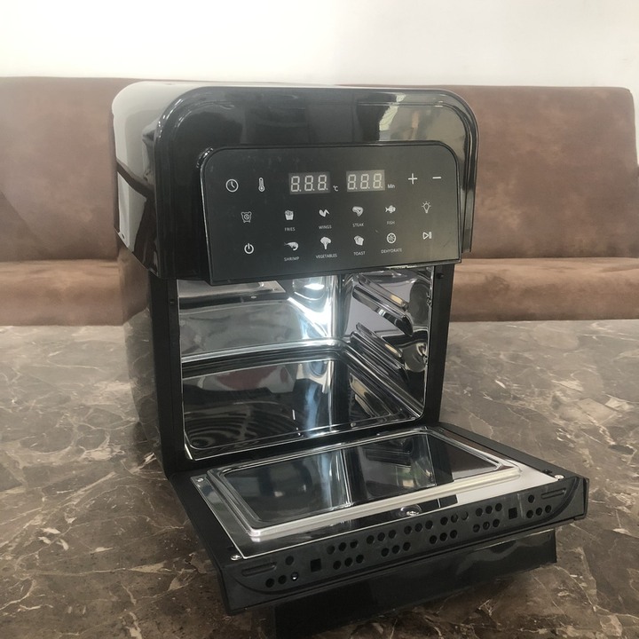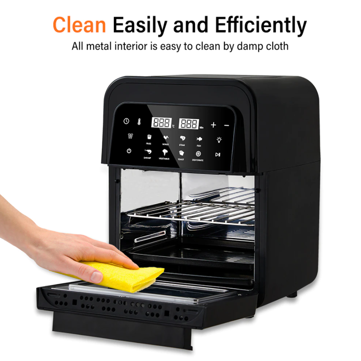 Nồi chiên không dầu dung tích 12 lít công suất 1500W • Phù hợp với nhiều thực đơn & nhu cầu nấu nướng lớn • Tích hợp quạt đối lưu và chức năng quay: Giúp