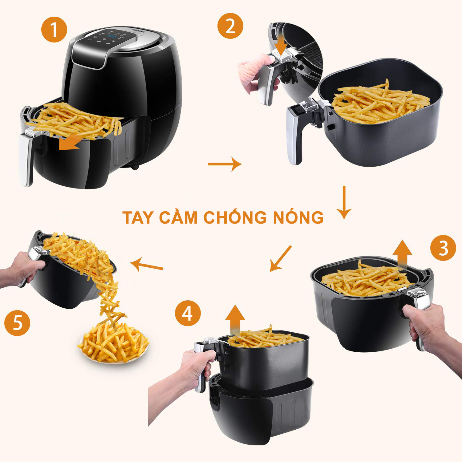 9 Đặc điểm nổi bật của nồi chiên không dầu Bear 6L AF-5H20J75 Nồi chiên không dầu Bear 6L AF-5H20J75 là trợ thủ đắc lực giúp bạn tạo ra những món ăn ngon, ít dầu
