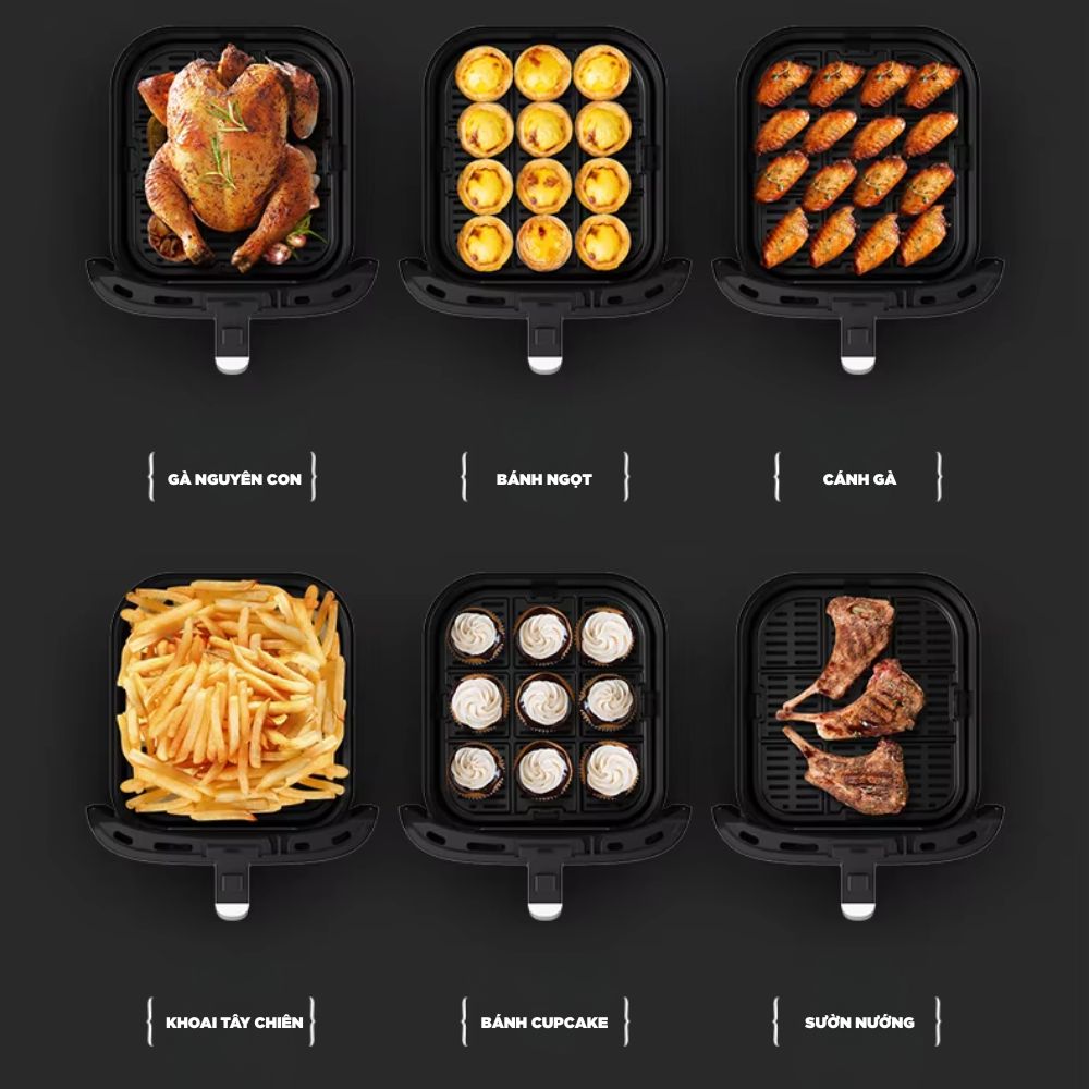 • Dung tích lớn 9L: Chiên nướng thoải mái cho gia đình và tiệc tùng.