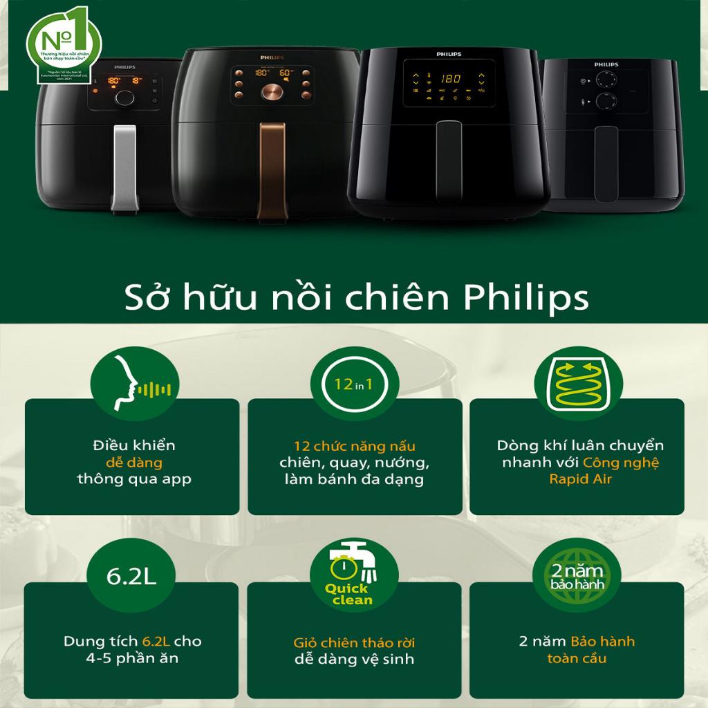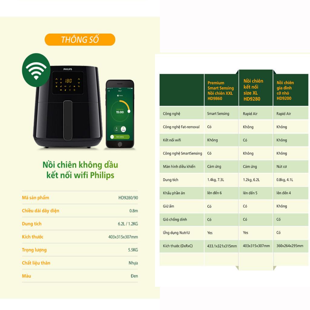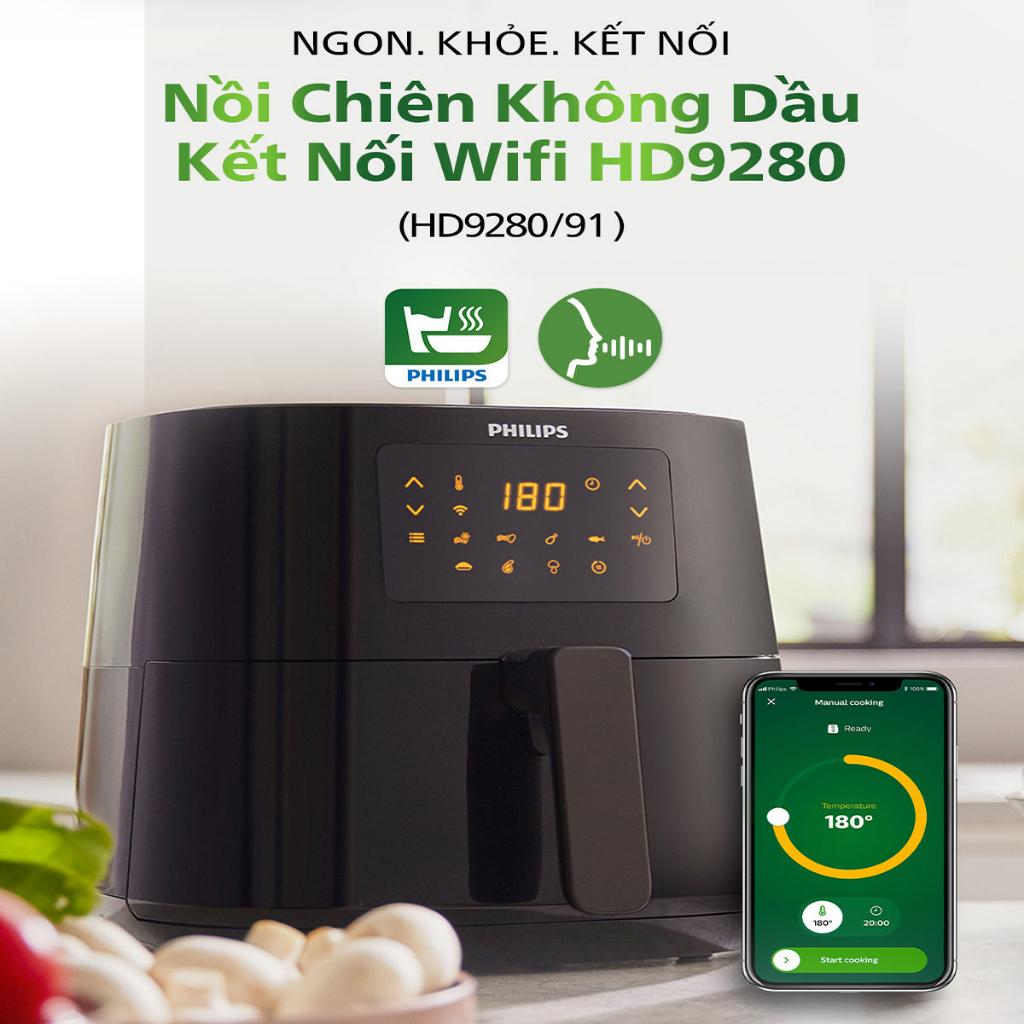 ✨Nồi Chiên Không Dầu Philips HD9280/90, 2000W-6.2Lit, Kết Nồi Wifi, Hàng Chính Hãng