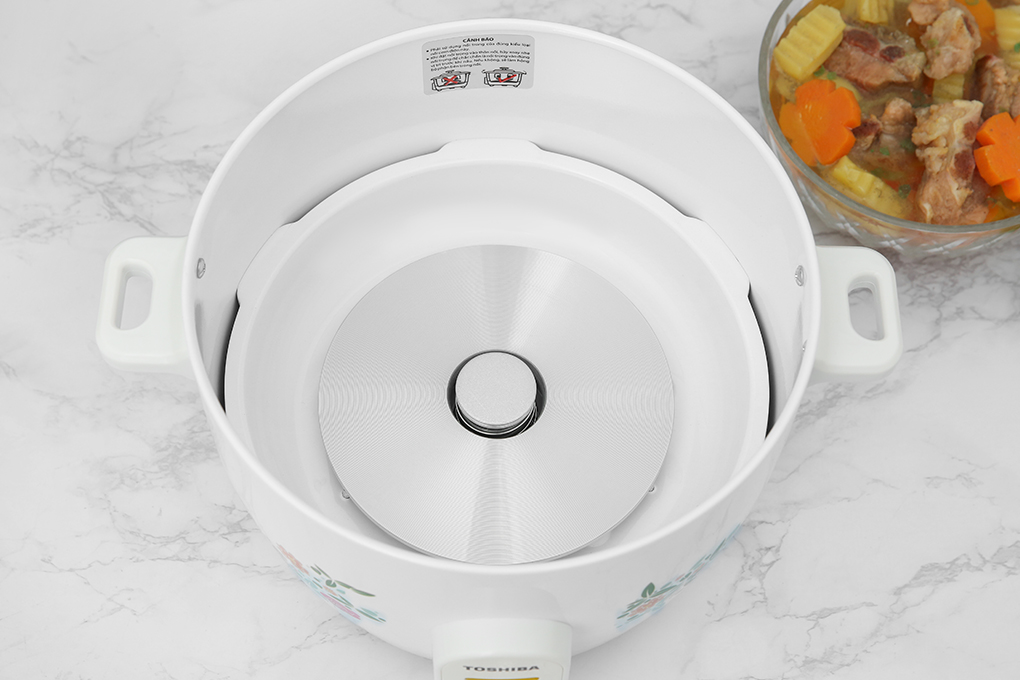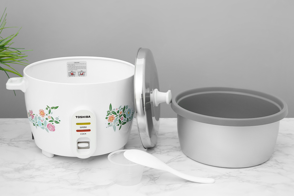 Nồi cơm điện Toshiba kiểu dáng mềm mại, họa tiết trang nhã, thiết kế nắp rời với dung tích 1.8 lít dùng cho gia đình 4 - 6 thành viên Vỏ nồi bằng thép phủ sơn tĩnh