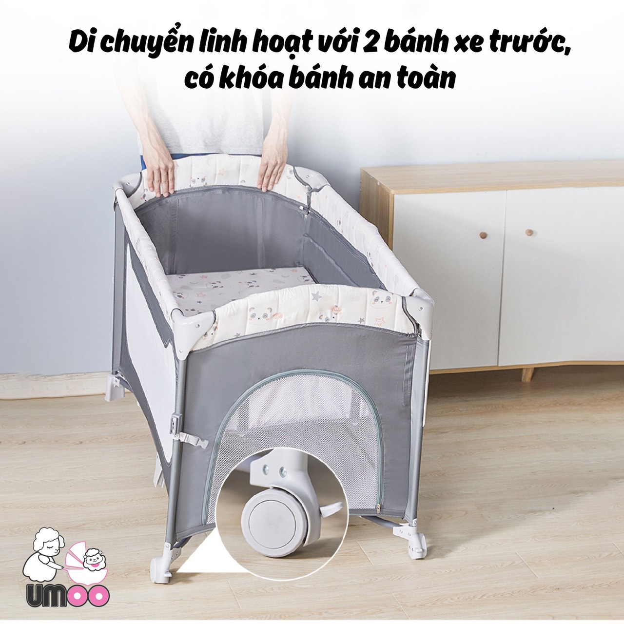 Nôi cũi vải gấp gọn đa năng umoo um08108 chính hãng sang chảnh vừa đảm bảo tính riêng tư, an toàn cho con có chỗ ngủ riêng. Vừa gần gũi, ấm cúng sát cạnh ba mẹ. Con chỉ cần ọ ẹ một chút là mẹ đã kịp thời dỗ dành con ngay. Khoẻ cả con, khoẻ luôn cả mẹ ấy.