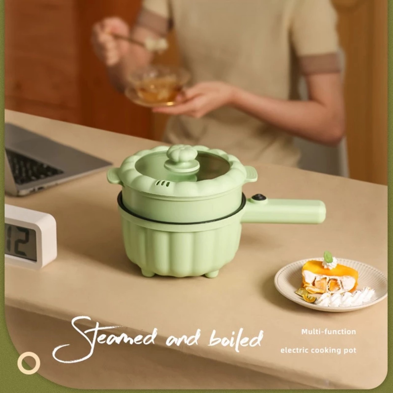 Nồi điện đa năng 1.3 Lít Nồi lẩu mini, ca nấu mì cao cấp 2 tầng Nồi điện với 2 nấc nhiệt thế hệ mới có tay cầm Hàng chính hãng D Danido D