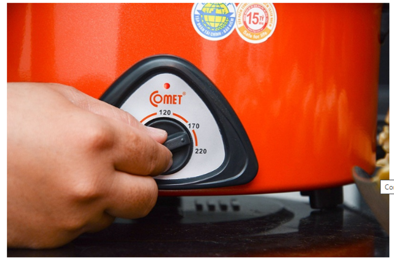 - Nồi lẩu điện Comet CM7730 có thiết kế núm điều chỉnh nhiệt độ rất dễ dàng và thuận tiện trong quá trình nấu, nhiệt độ của bếp có thể điều chỉnh dễ dàng từ 65 - 220 độ C phù hợp với rất nhiều món ăn khác nhau.