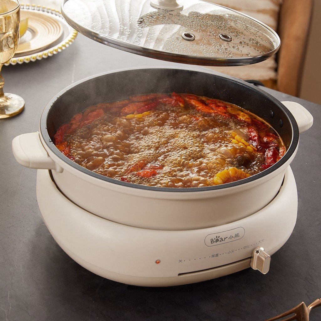 ✨Nồi lẩu nướng đa năng Bear DHG-C40W2, 3 khay in 1, dung tích 4L, chống dính tốt, kèm khay hấp - HÀNG CHÍNH HÃNG