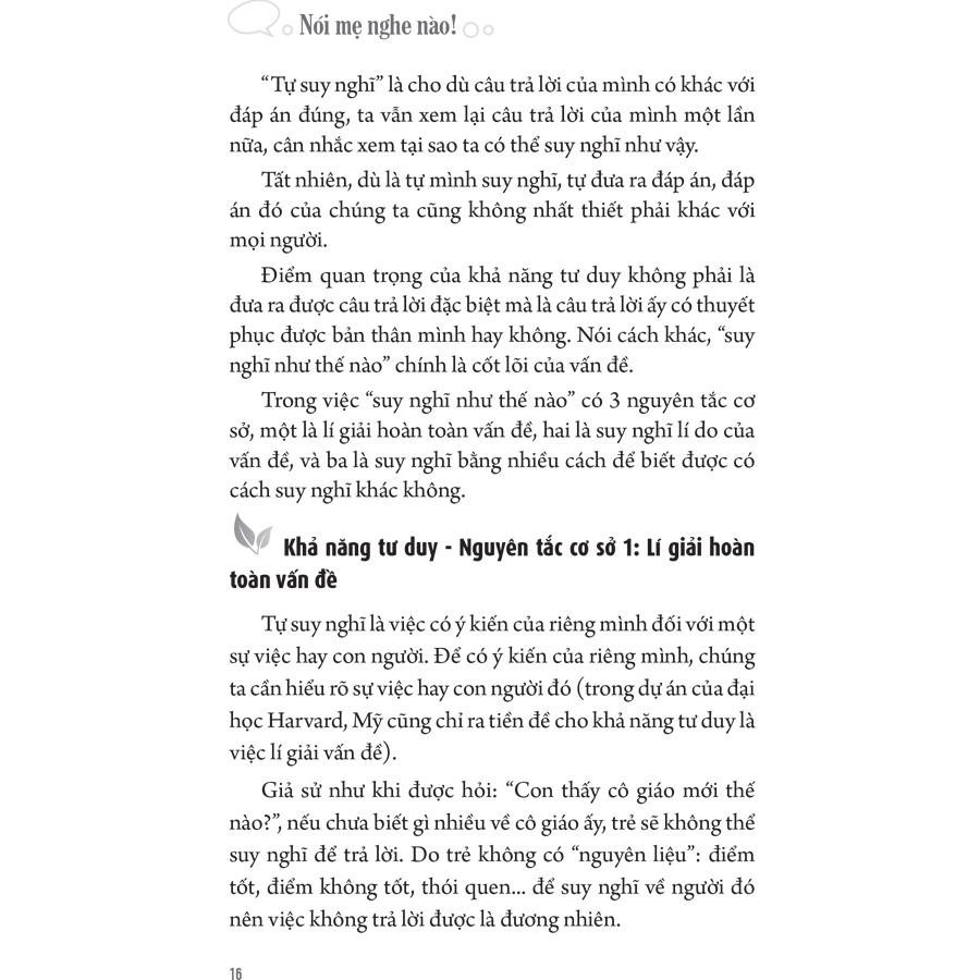 Để nâng cao khả năng tư duy của trẻ cũng cần các ông bố, bà mẹ thử sức với khả năng tư duy của chính mình. Tất cả những chỉ dẫn cần thiết đều sẽ được nêu trong cuốn sách này. Vậy thì, các bạn đã sẵn sàng để khiến tất cả những cuộc hội thoại mỗi ngày với con chuyển hóa từ “ cố gắng suy nghĩ “ sang “ tận hưởng thời gian vui vẻ bên nhau” chưa nào?