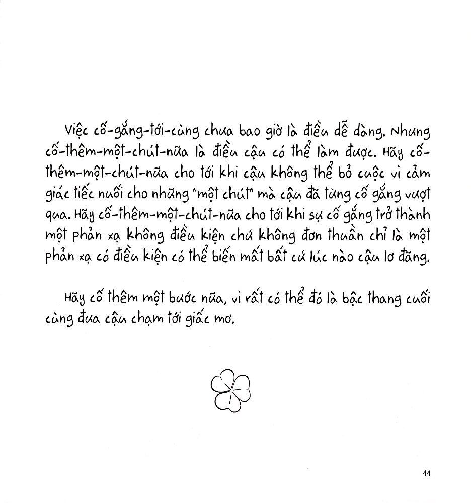 Nếu mình có được cơ hội trò chuyện cùng cậu qua những trang sách này thì hãy tin rằng vũ trụ không mang mình đến để giúp cậu tìm kiếm hay hoàn thiện ước mơ, vì bản thân cậu thừa sức làm được điều đó. Mình được gửi đến là để cùng cậu đánh thức giấc mơ đang ngủ quên của cậu, một lần nữa.