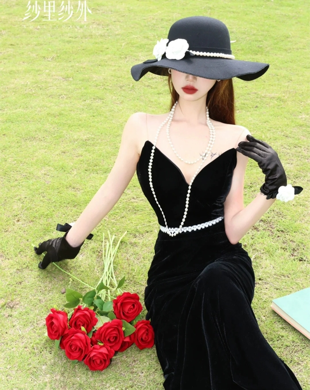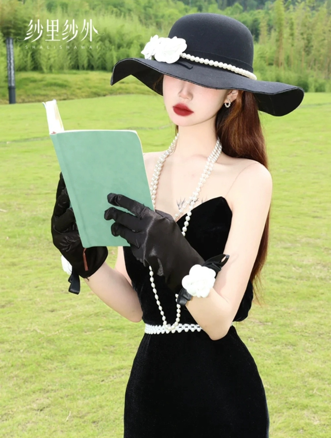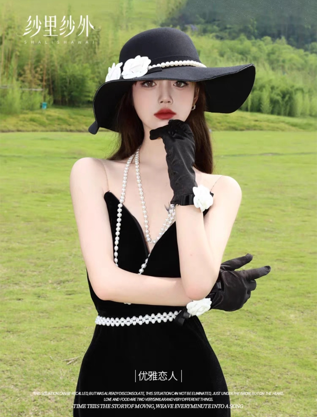 Nón cao bồi vành bằng mũ rộng vành nỉ dạ phối 2 hoa đen trắng đai ngọc trai nhân tạo thời trang Hàn Quốc Nón đi biển mũ vành nhỏ thoáng mát thời trang du