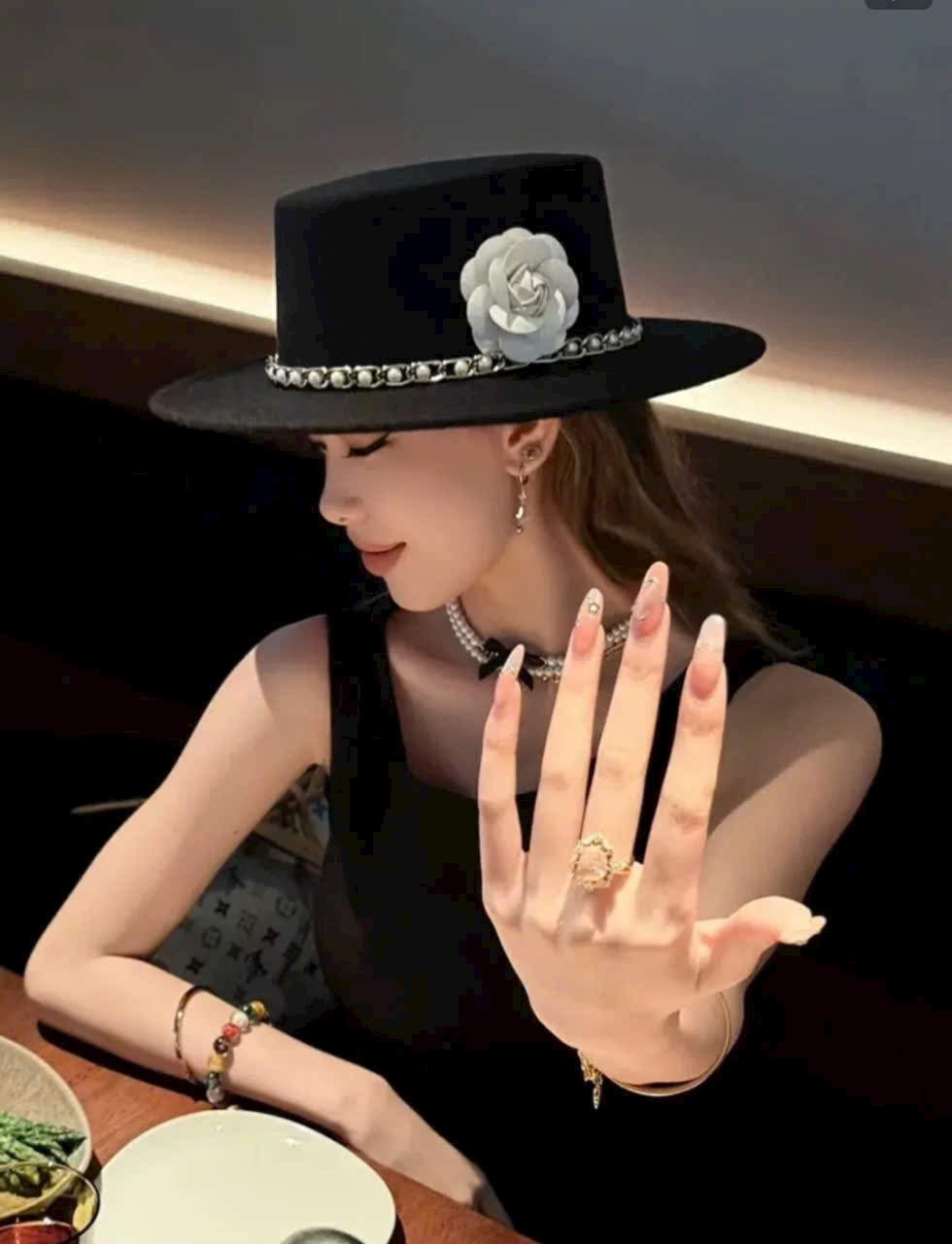 ✨Nón mũ nỉ fedora: Thiết kế vành bằng phối hạt đai xích gắn hoa, tạo nên vẻ ngoài trắng nhã. Chất liệu nỉ mềm mại, mang lại cảm giác thoải mái khi sử dụng. Kiểu dáng nón fedora hợp thời trang, phù hợp với nhiều phong cách thời trang Dona25090905