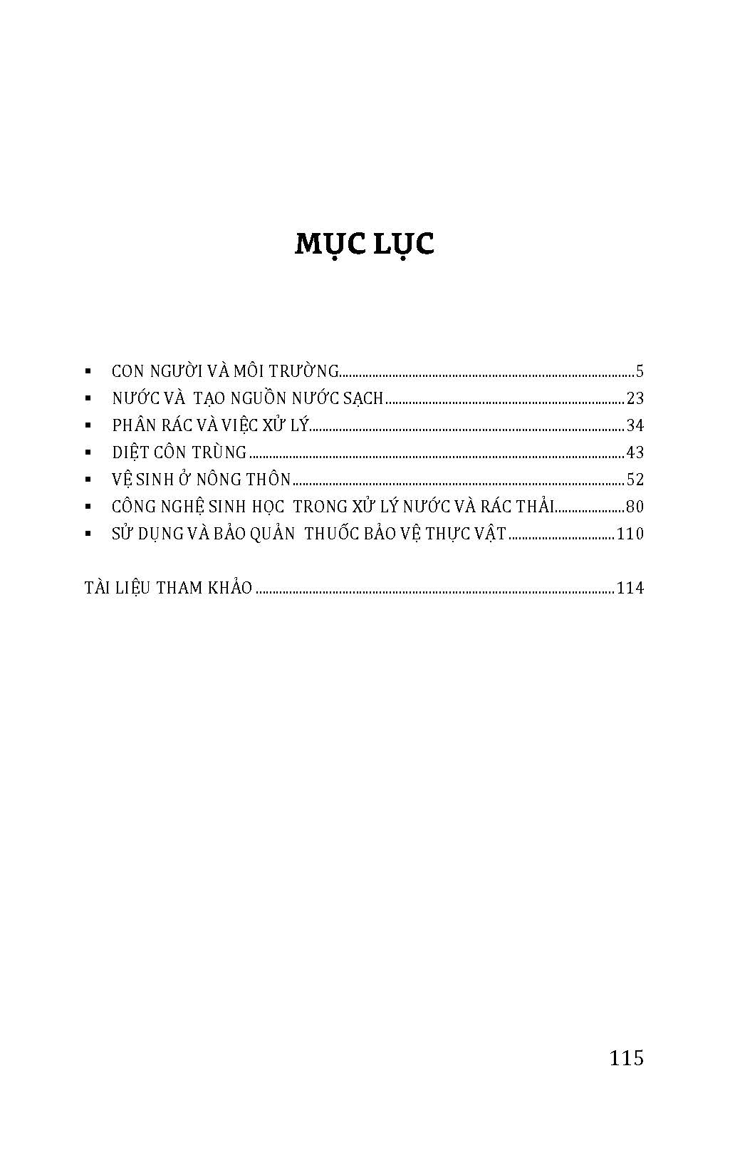 Môi trường là một trong những tiêu chí quan trọng trong Bộ tiêu chí Quốc gia của Chương trình mục tiêu xây dựng nông thôn mới (NTM), có ý nghĩa quan trọng đối với chất lượng sống của người dân. Công tác bảo vệ môi trường nông thôn, đặc biệt được xác định là một trong những trụ cột chính để nâng cao chất lượng đời sống người dân nông thôn, đưa Chương trình Mục tiêu quốc gia xây dựng nông thôn mới thực sự đi vào chiều sâu và bền vững. Nội dung “Xử lý nước, rác thải, thuốc bảo vệ thực vật phòng bệnh ở nông thôn” đề cập 7 vấn đề cơ bản: Con người và môi trường; Nước và tạo nguồn nước sạch; Phân rác và việc xử lý; Diệt côn trùng; Vệ sinh ở nông thôn; Công nghệ sinh học trong xử lý nước và rác thải; Sử dụng và bảo quản thuốc bảo vệ thực vật.