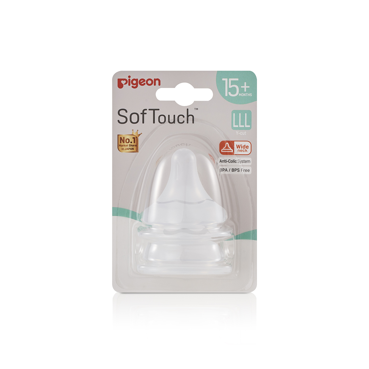 • M / L / LL / LLL (2 cái / vỉ): Từ 3 / 6 / 9 / 15 tháng tuổi. Lỗ núm được cắt chữ Y và sữa sẽ chảy ra khi có áp lực lên núm vú. Điều này giúp bé kiểm soát được dòng sữa và rèn luyện khả năng bú vì bé ở độ tuổi này đã phát triển cơ hàm mạnh mẽ hơn. Thiết kế thông minh, độc đáo của núm ty Pigeon siêu mềm plus thế hệ III Núm ty Pigeon siêu mềm plus thế hệ III