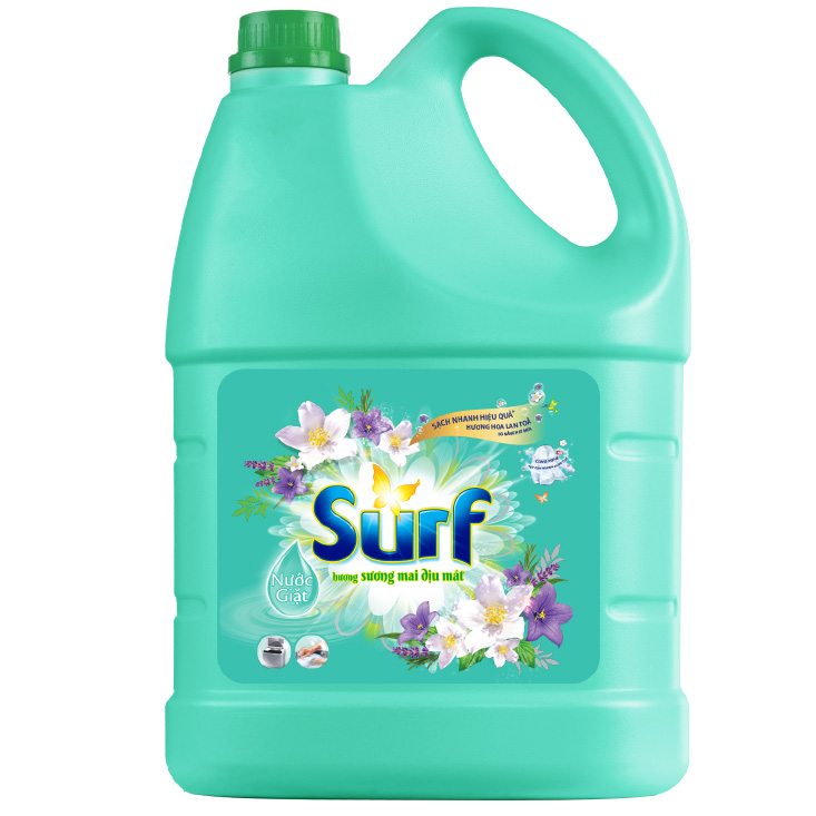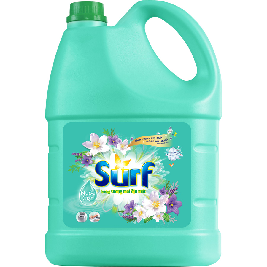 - Nhờ có hương nước xả vải mới cùng hệ bọt làm sạch thông minh NƯỚC GIẶT SURF HƯƠNG SƯƠNG MAI DIỤ MÁT 3.6KG - LẤY LẠI TƯƠI MỚI CHO ÁO QUẦN Giặt giũ dễ dàng lại càng thêm sướng với nước giặt Surf sương mai dịu mát. Nước giặt sở hữu công ngHệ bọt làm sạch thông minh MỚI, giúp thấm sâu vào từng sợi vải, giặt sạch nhanh và bung hương cỏ hoa dễ chịu. Thêm tiện lợi hơn với chai đựng chắc chắn. ƯU ĐIỂM NỔI BẬT: