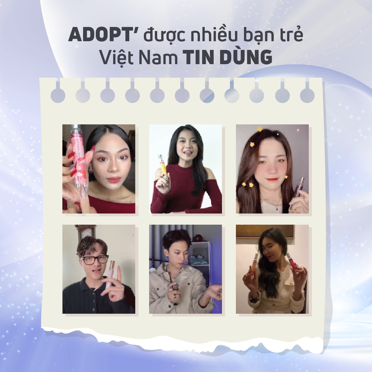 - Bảo quản: Nơi thoáng mát, tránh ánh nắng trực tiếp. THÔNG TIN THƯƠNG HIỆU Adopt là thương hiệu Pháp, ra đời từ năm 1986 Đã có 170 cửa hàng trên toàn thế giới Tỷ lệ mua lại đạt tới 97,2 % (khảo sát 1 triệu người dùng tại Pháp) 100% hàng chính hãng, có xuất xứ tại Pháp và phân phối độc quyền tại Việt Nam. Nước hoa Adopt’ được tin dùng bởi nhiều người nổi tiếng như: hoa hậu Hòa Bình 2021 Nguyễn Thúc Thùy Tiên, diễn viên Mạnh Trường, diễn viên Thịnh Sếu,... HƯỚNG DẪN SỬ DỤNG