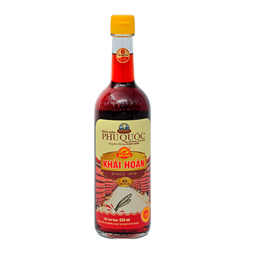 Nước mắm Khải Hoàn Phú Quốc 40/43 độ đạm: thông tin sản phẩm- Sản xuất và đóng chai tại: Đảo Phú Quốc, Kiên Giang, Việt Nam.