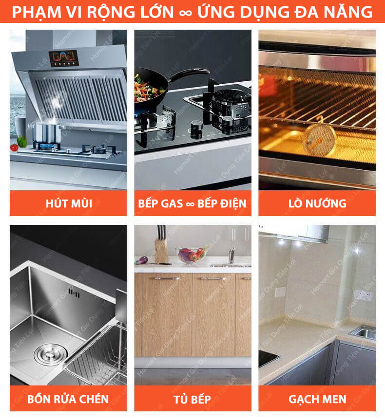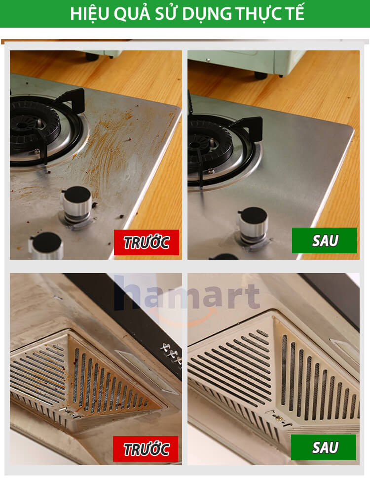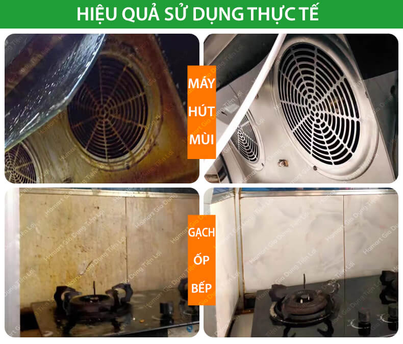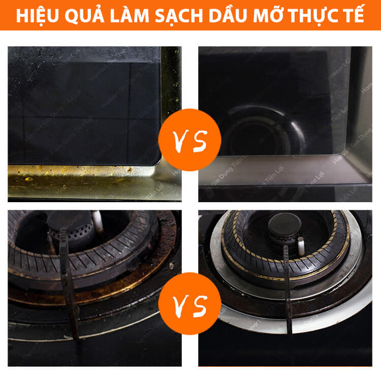***LƯU Ý: Sản phẩm chỉ tẩy được vết dầu mỡ, mảng bám nhẹ - Ko tẩy sạch hoàn toàn được cặn dầu mỡ bám lâu ngày