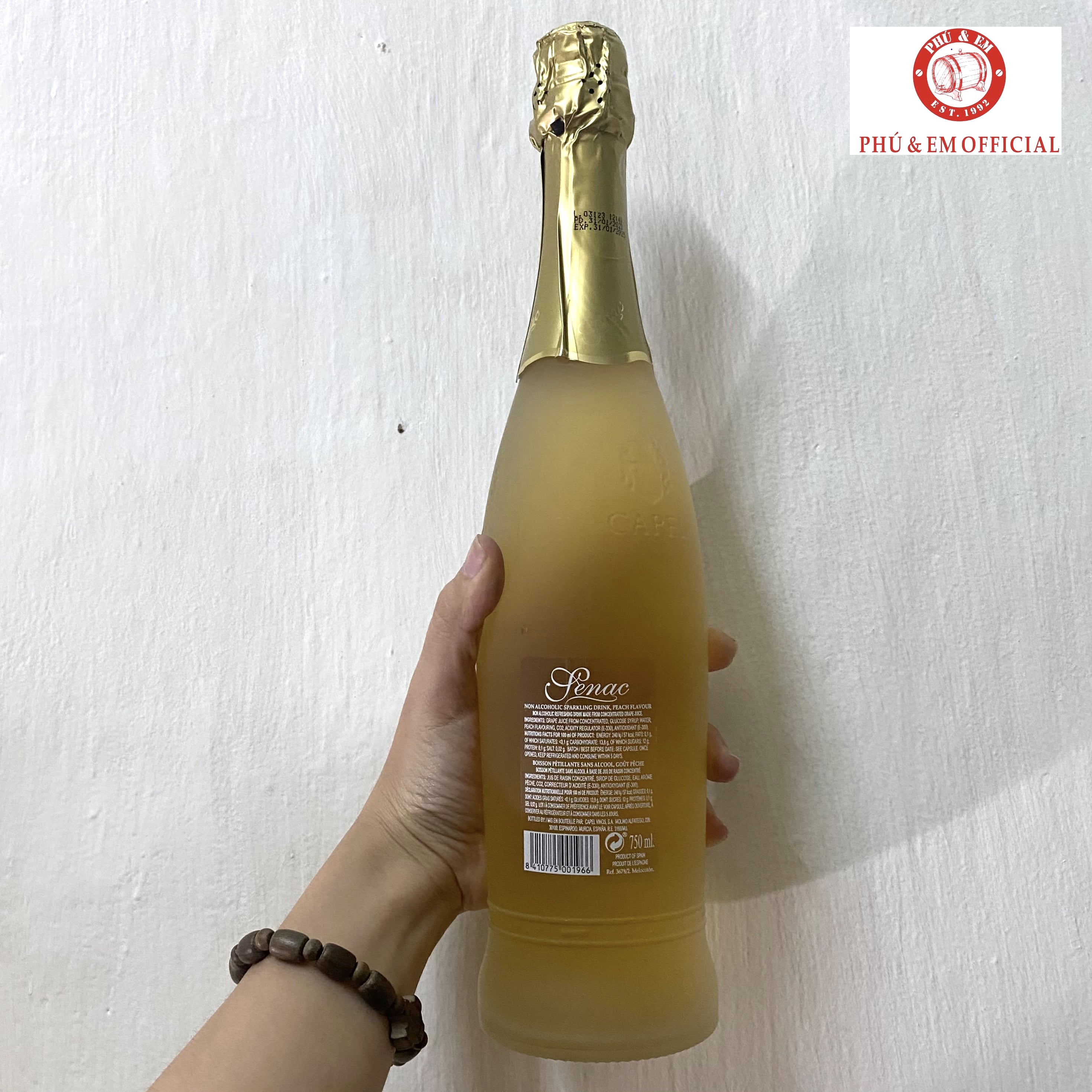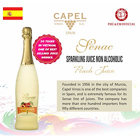 • Palate: The fresh and gentle peach aromas on the palate with a medium body accompanied by a light bubbly sensation. These goods have gas, no alcohol and a sweet taste which is good for digestion and beauty.   Giải Thưởng/ Prizes: Đang cập nhật. Nhãn Hiệu/ Brand: Senac. Xuất Xứ/ Origin: Tây Ban Nha. Vùng/ Region: Murcia. Giống Nho/ Grape Variety: Nước nho cô đặc, hương Đào. Dung Tích/ Capacity: 750ml Nồng Độ/ ABV: 0%   Kết Hợp/ Pair Food: Thích hợp cho mọi món ăn, phù hợp với mọi thành viên trong gia đình, các sự kiện, bữa tiệc và các ngày Lễ. For every food, suitable for every member of the family, events, parties, Feast days and especially for congratulatory occasions need an exploded cap and gas foam.   Nhiệt Độ Ướp/ Ideal Temperature: 8-10°C