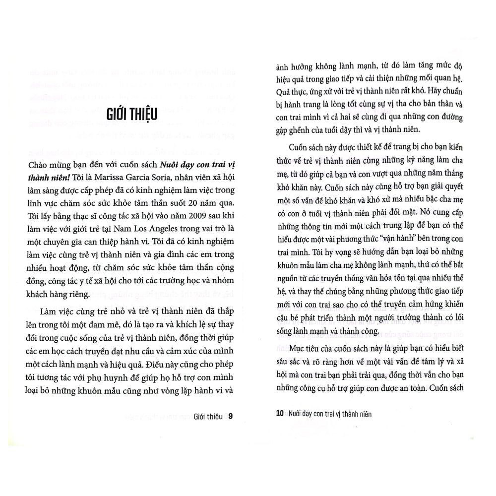 Cuốn sách này được thiết kế để trang bị cho bạn kiến thức về trẻ vị thành niên cùng những kỹ năng làm cha mẹ, từ đó giúp cả cha mẹ và con vượt qua những năm tháng khó khăn này. Cuốn sách cũng hỗ trợ cha mẹ giải quyết một số vấn đề khó khăn và khó xử mà nhiều bậc cha mẹ có con ở tuổi vị thành niên phải đối mặt. Nó cung cấp những thông tin mới một cách trung lập để phụ huynh có thể hiểu được một vài phương thức “vận hành” bên trong con trai mình.