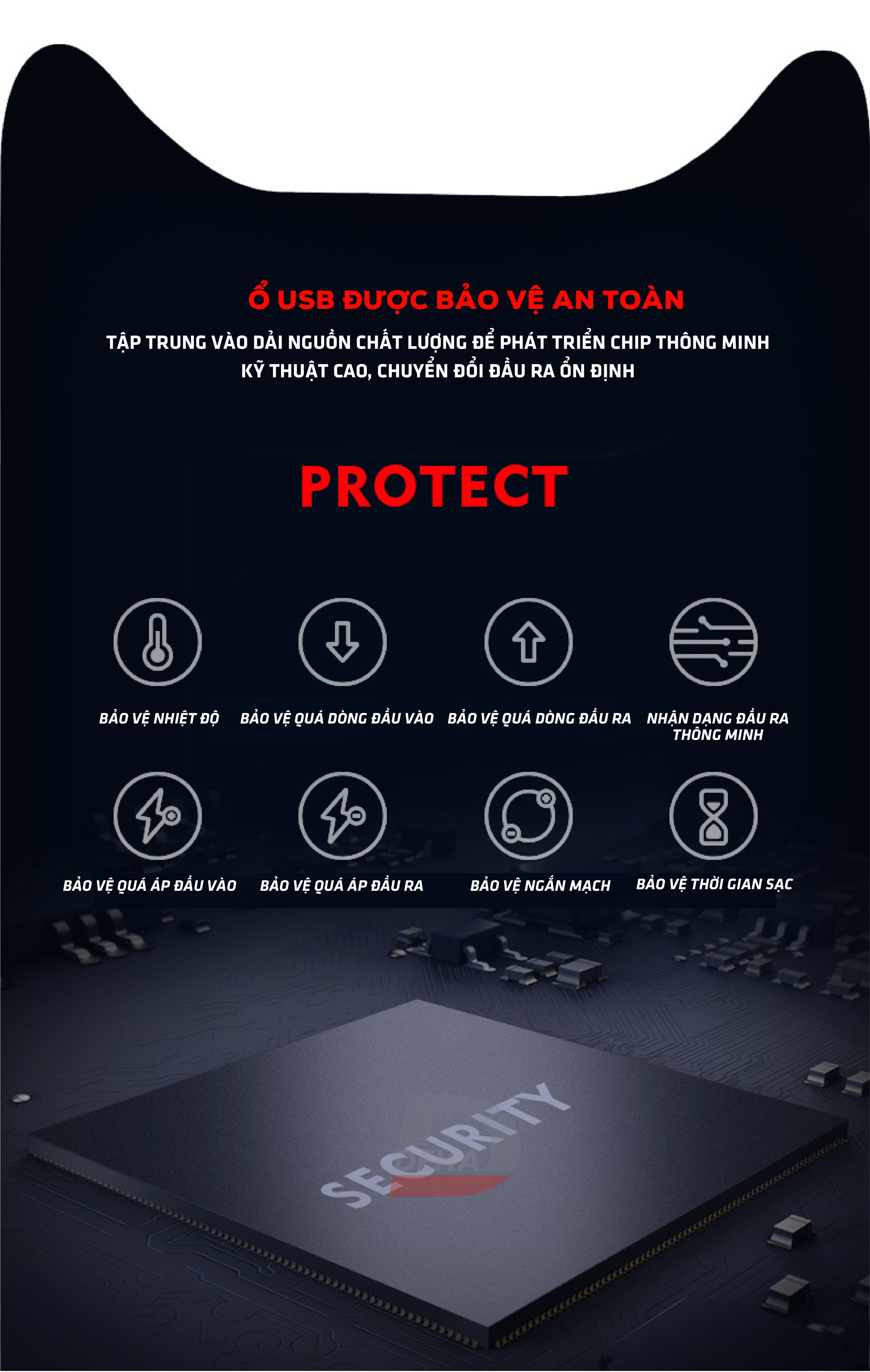 - Bảo vệ an toàn chống xung điện áp cao, xung sét. - Công tắc tích hợp rơ le chống quá tải 15A. - Ổ cắm đa năng sử dụng đồng chuyên dụng siêu đàn