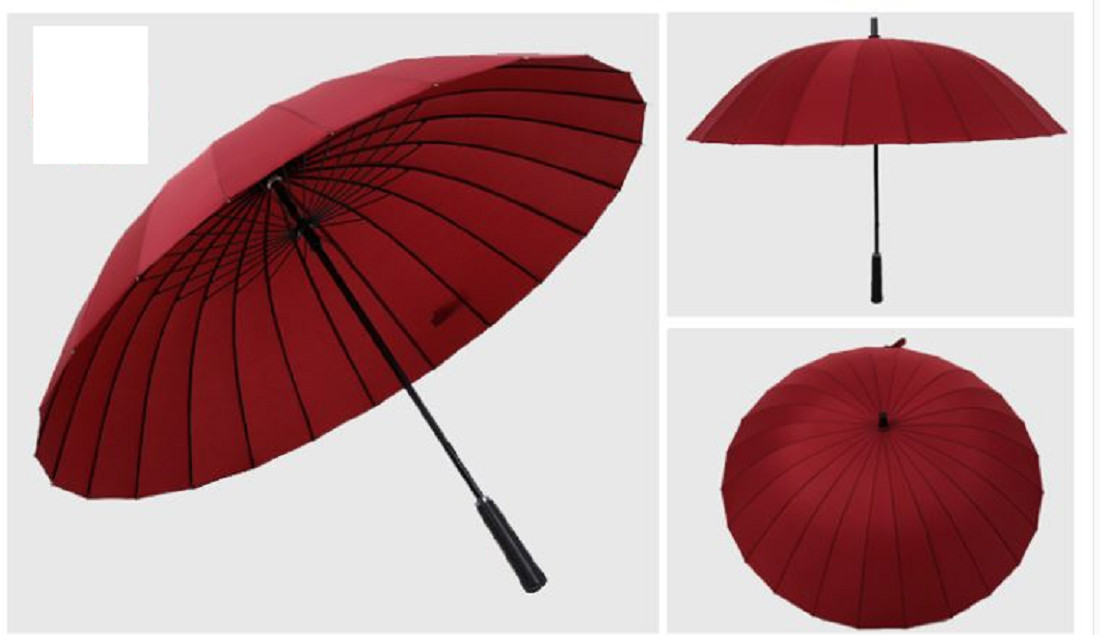 Ô cán dài đi mưa cỡ lớn 24 nan chồng lật cao cấp màu đỏ đô