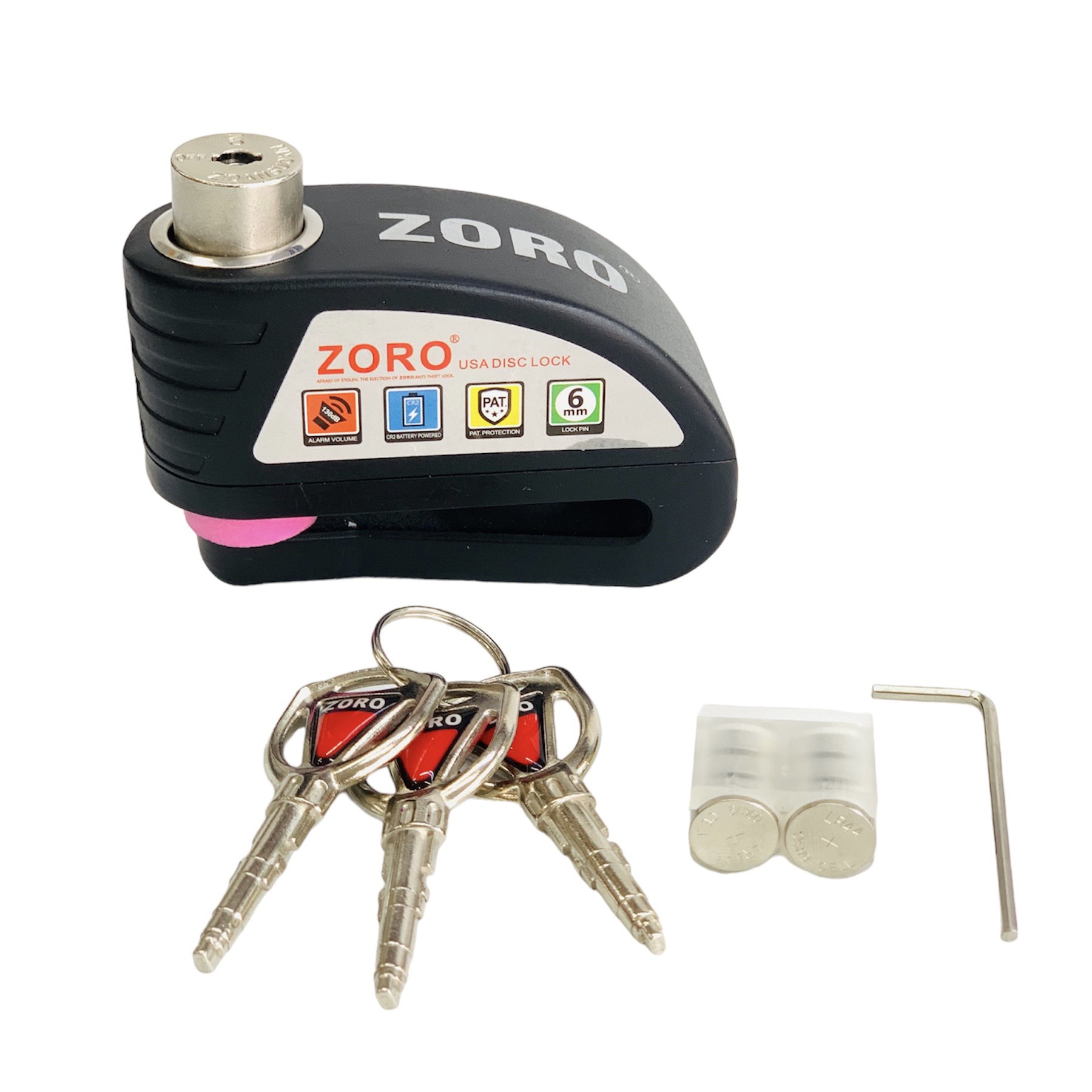 Ổ KHOÁ ĐĨA XE MÁY ZORO BÁO ĐỘNG CHỐNG TRỘM MẪU MỚI PHIÊN BẢN MÀU ĐEN