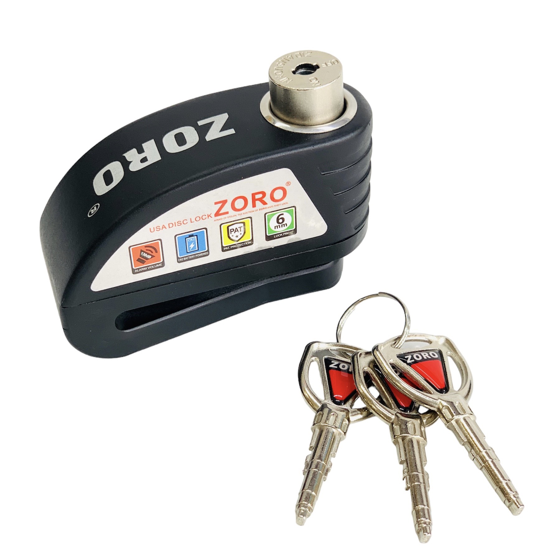 ✨Ổ khóa đĩa xe máy báo động chống trộm ZORO chìa tròn màu đen - chất liệu thép chống gỉ chống nước - hàng chính hãng