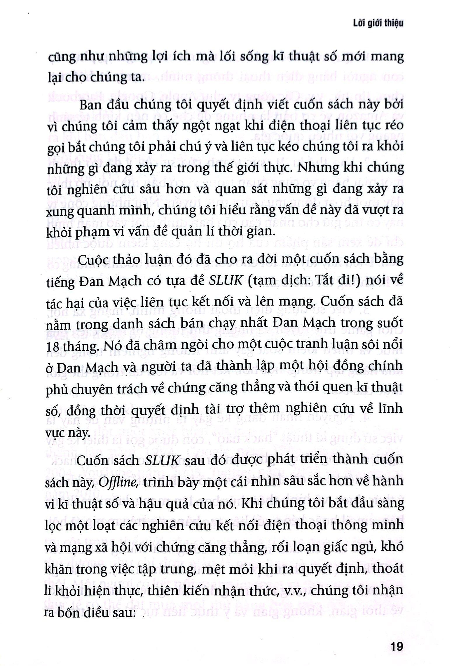 Chúng tôi hy vọng, sau khi đọc xong cuốn sách này, các bạn độc giả sẽ nhận ra được những chiêu trò thu hút người sử dụng và cách tự bảo vệ m.ình khỏi những ô nhiễm kĩ thuật số. Hãy tránh xa khỏi những cám dỗ và hình thành thói quen sử dụng các thiết bị điện tử lành mạnh. Bỏ thói quen sử dụng điện thoại để vào mạng xã hội, chơi game, lướt web mất kiểm soát, từ đó tăng khả năng tập trung, làm việc, học hỏi và kết nối với thế giới thực.
