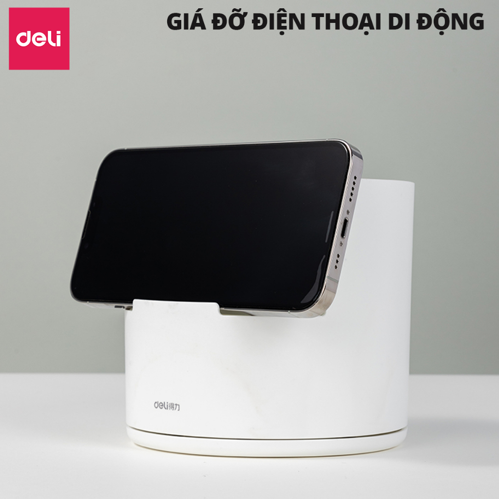 ✨Ống Bút Xoay 360 Độ Deli - Hộp Đựng Bút Tròn Nhiều Ngăn Để Bàn Tích Hợp Giá Đỡ Điện Thoại - Tặng Kèm Sticker